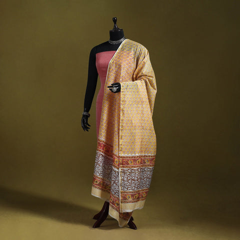Yellow - Handloom Chanderi Silk Hand Block Sanganeri Print Dupatta 17