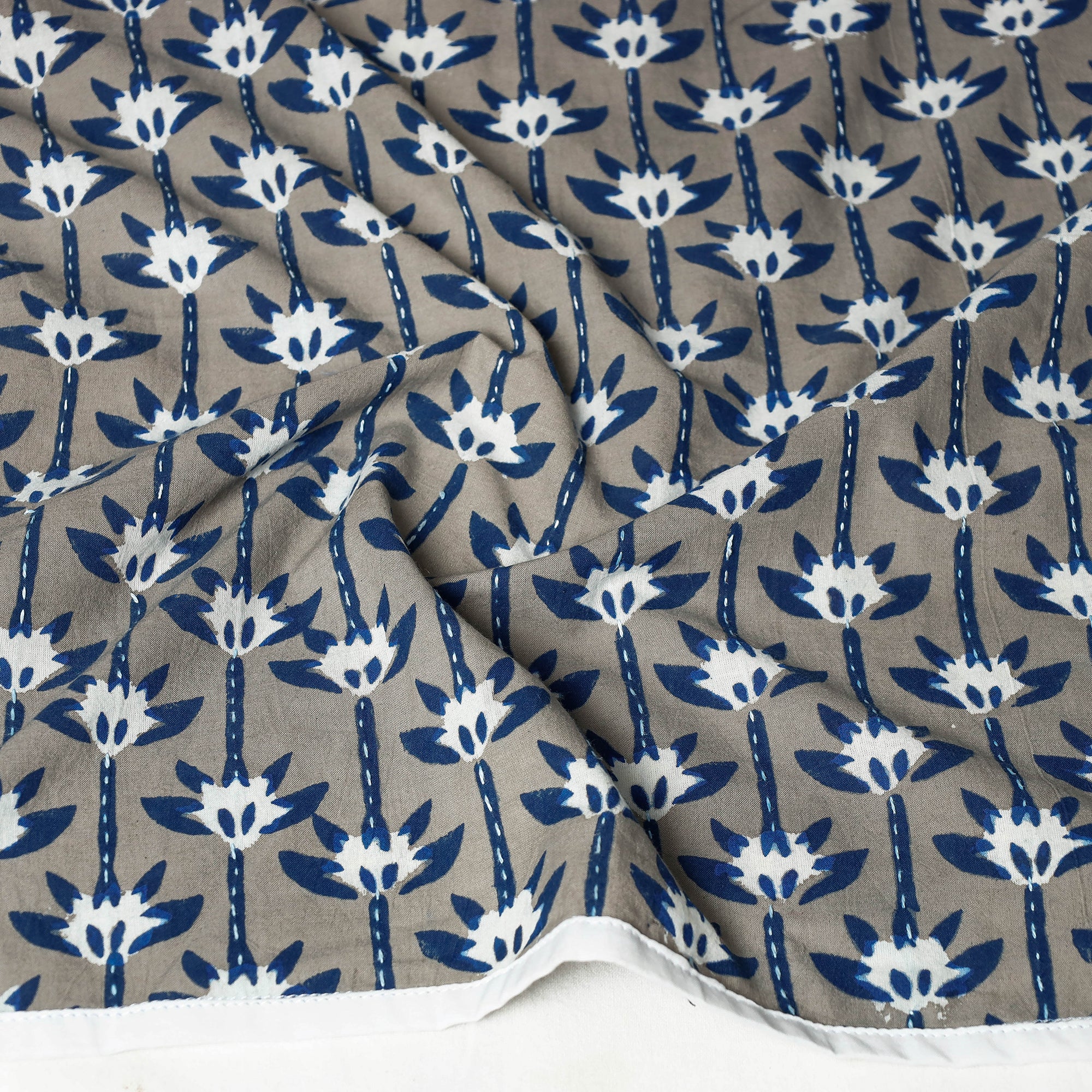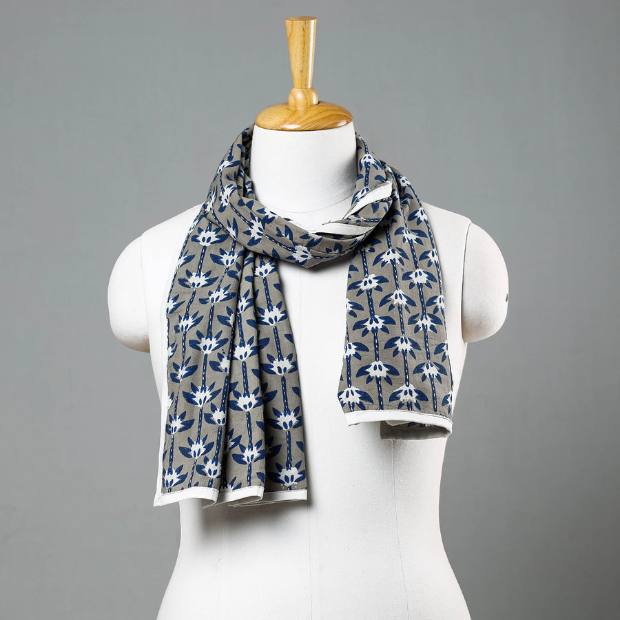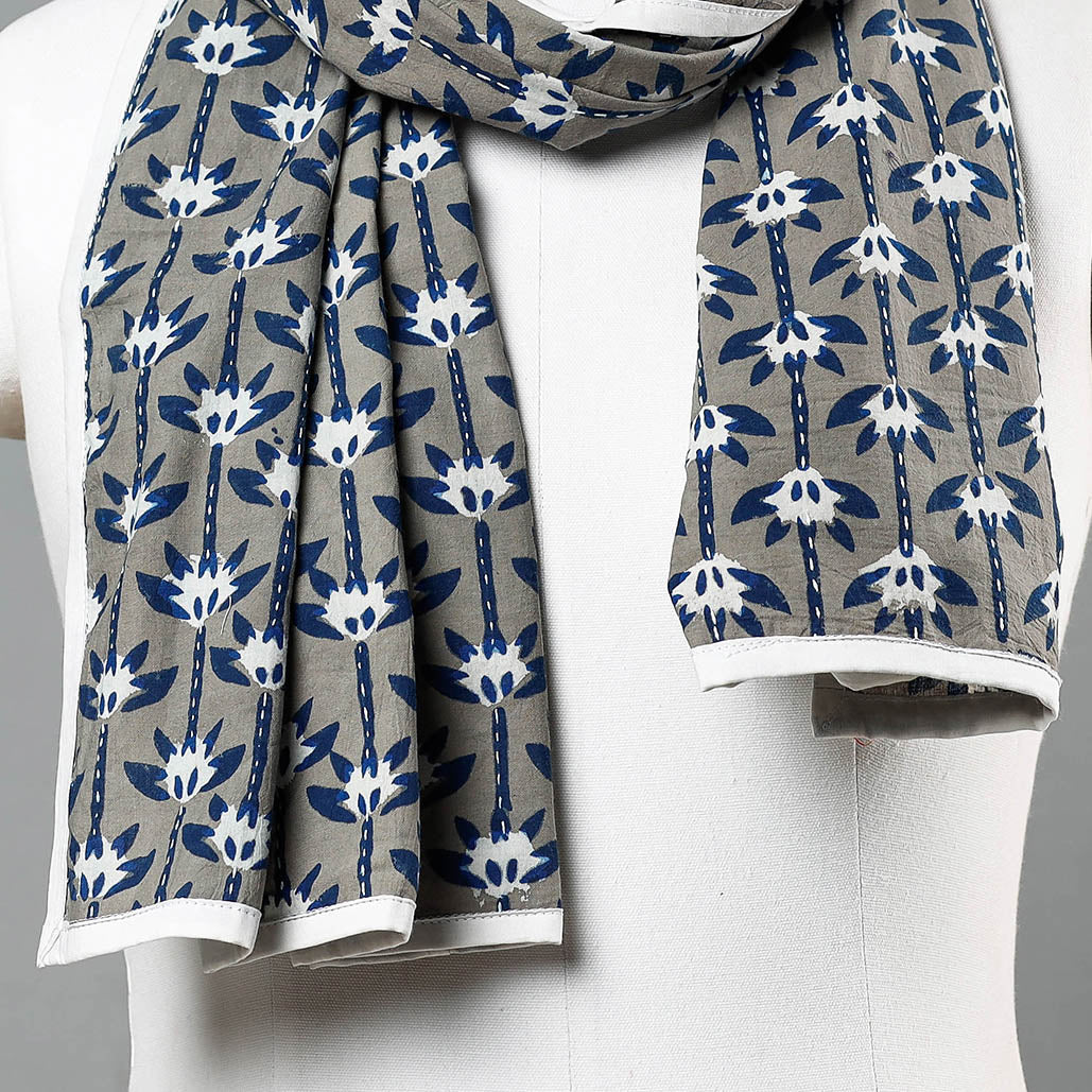 Grey - Sanganeri Block Printed Tagai Work Cotton Stole