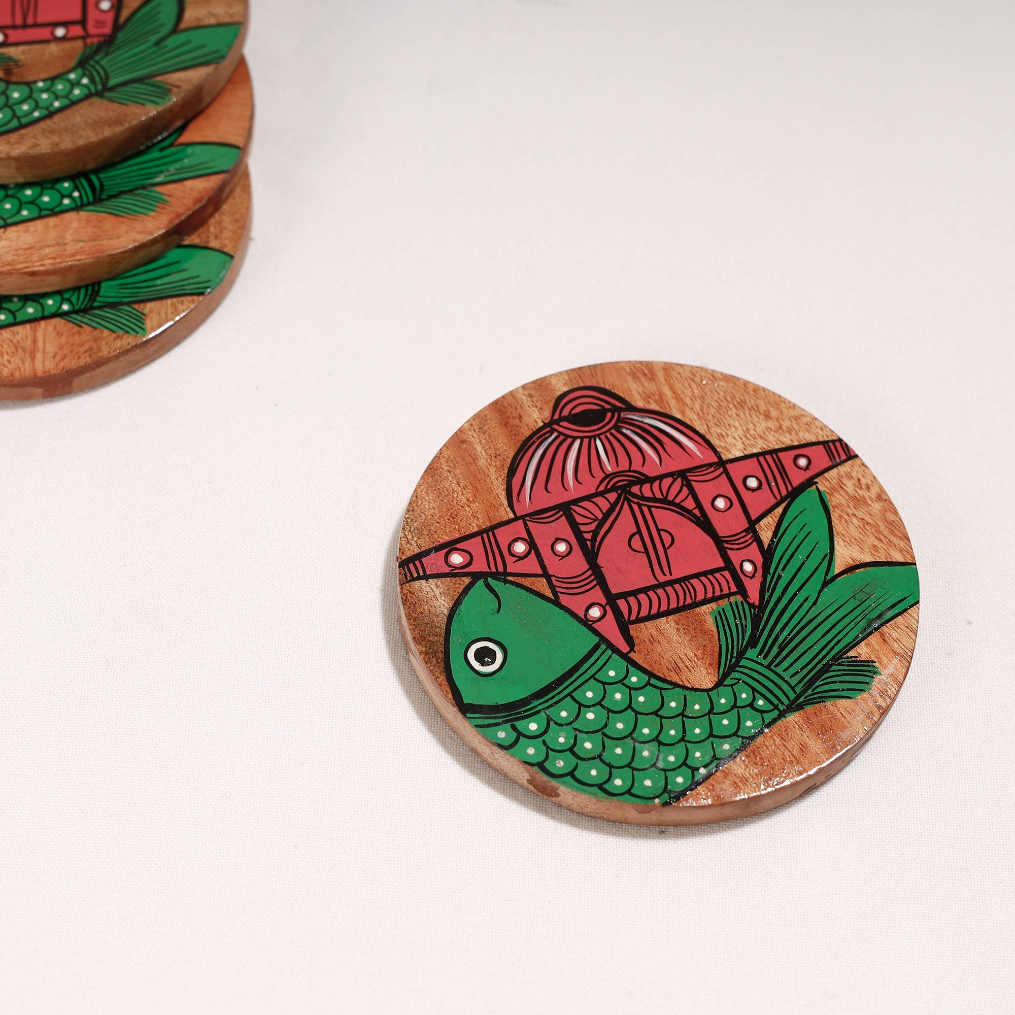 Elevate your tabletop decor with these exquisite traditional patua art coasters, meticulously crafted from akashmoni wood. Hand-painted with vibrant acrylic colours by skilled artisans in West Bengal, it brings a touch of India's rich artistic heritage to your home. Protect your surfaces in style while appreciating the artistry of these unique coasters.