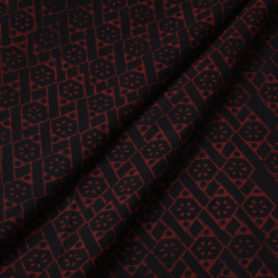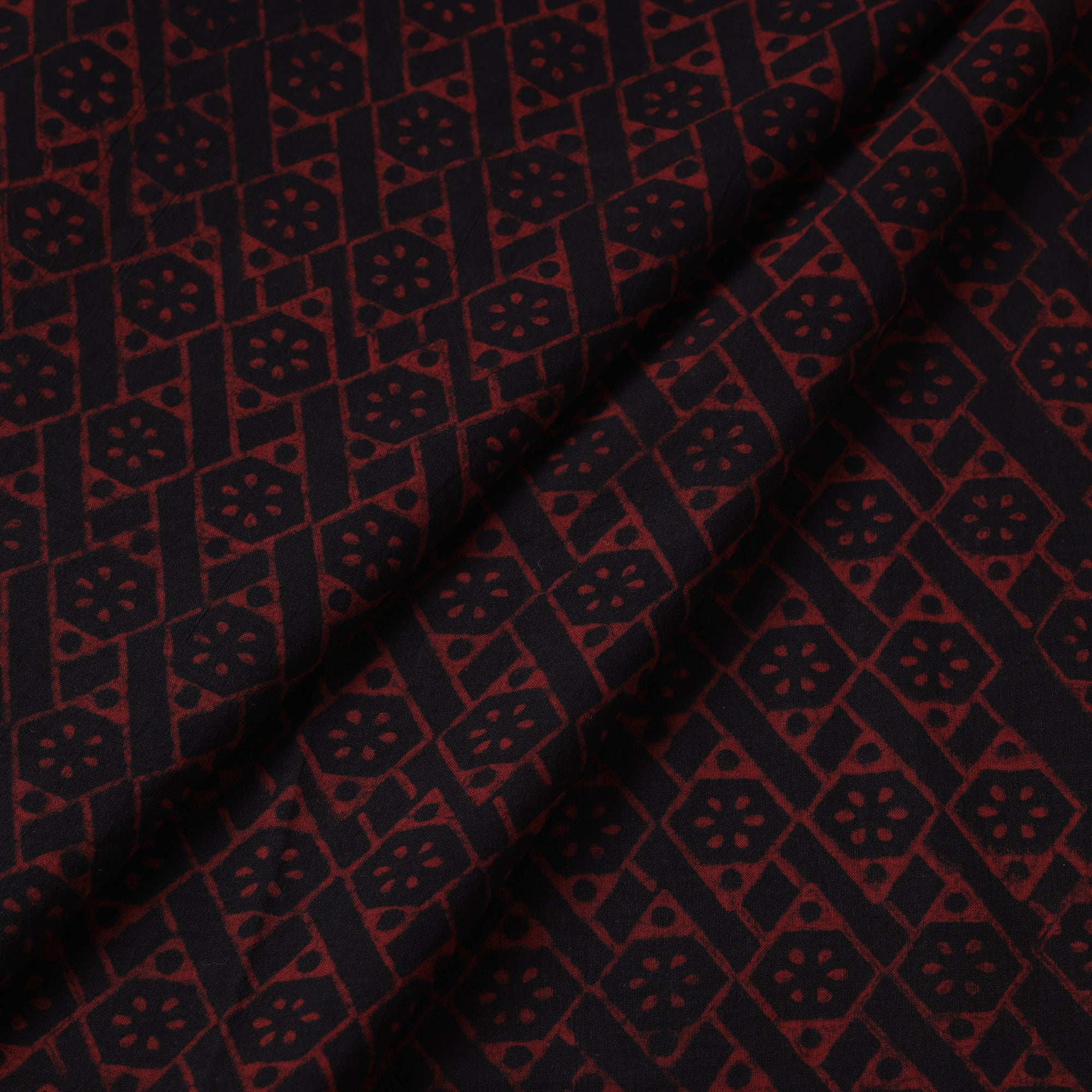 Fine-quality black akola hand block printed cotton fabric from Rajasthan. Made using natural dyes and a traditional process, this fabric is the perfect choice for anyone seeking a touch of authenticity and cultural heritage in their clothing or home decor.