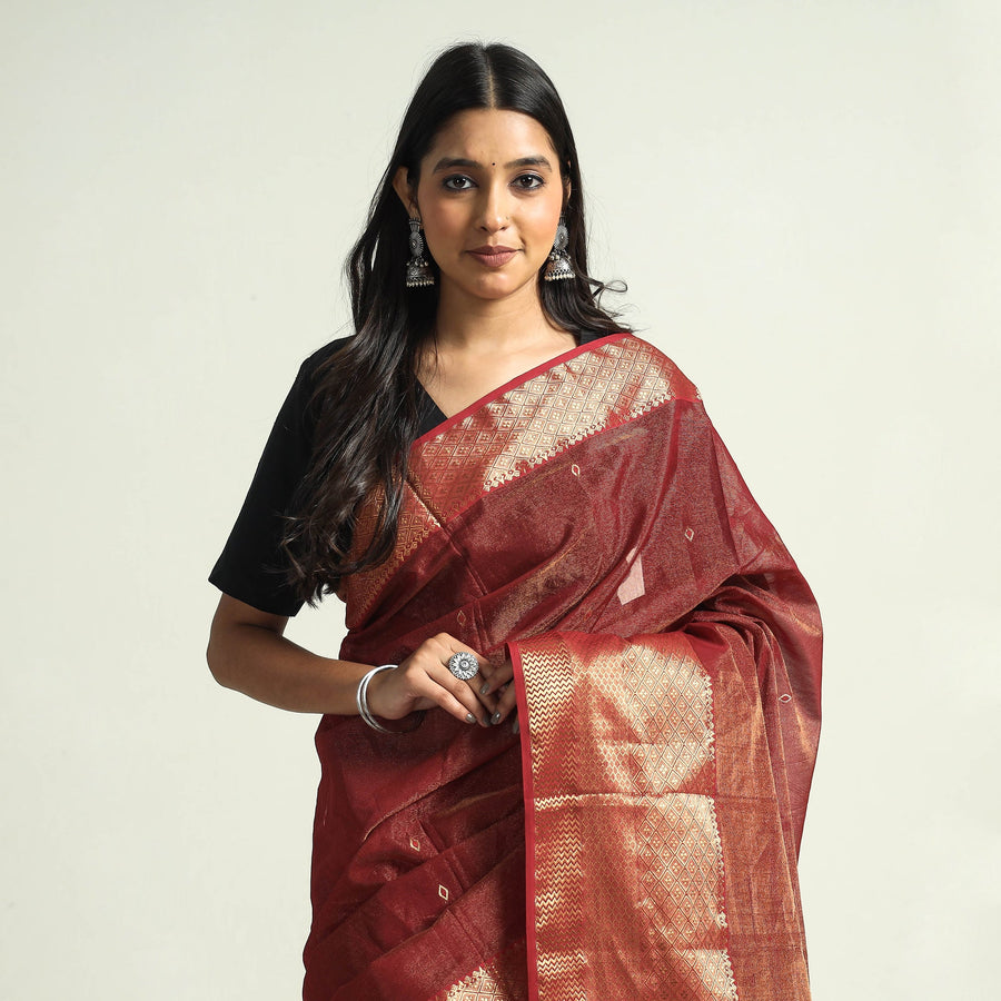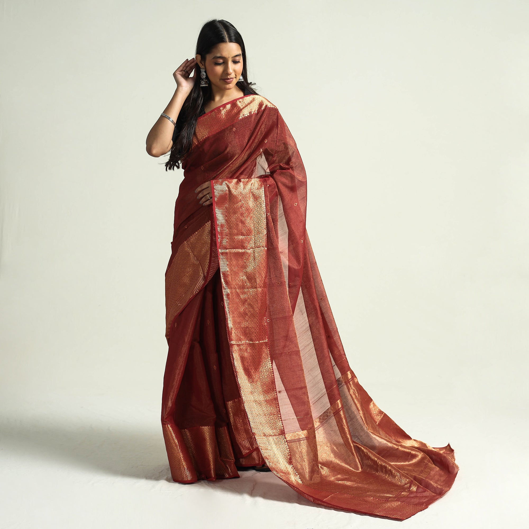 Red - Handloom Full Tissue Zari Chanderi Silk Saree 16
