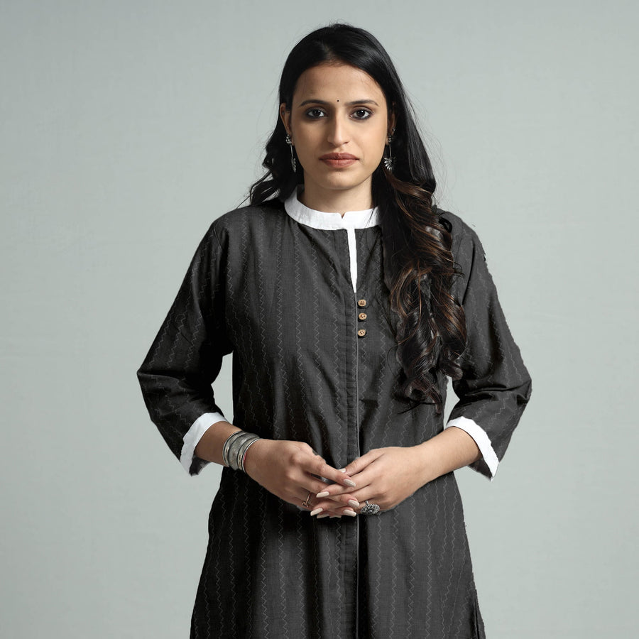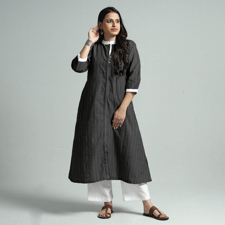 Look and feel beautiful in this uniquely designed jacquard cotton Floral kurta. This floral kurta is crafted from fine quality cotton fabric, ensuring a comfortable feel against your skin. It boasts exquisite jacquard weave designs, adding a touch of elegance to your ensemble. The kurta also features a convenient one-side pocket, perfect for carrying small essentials. It's an ideal choice for both daily outings and special occasions.