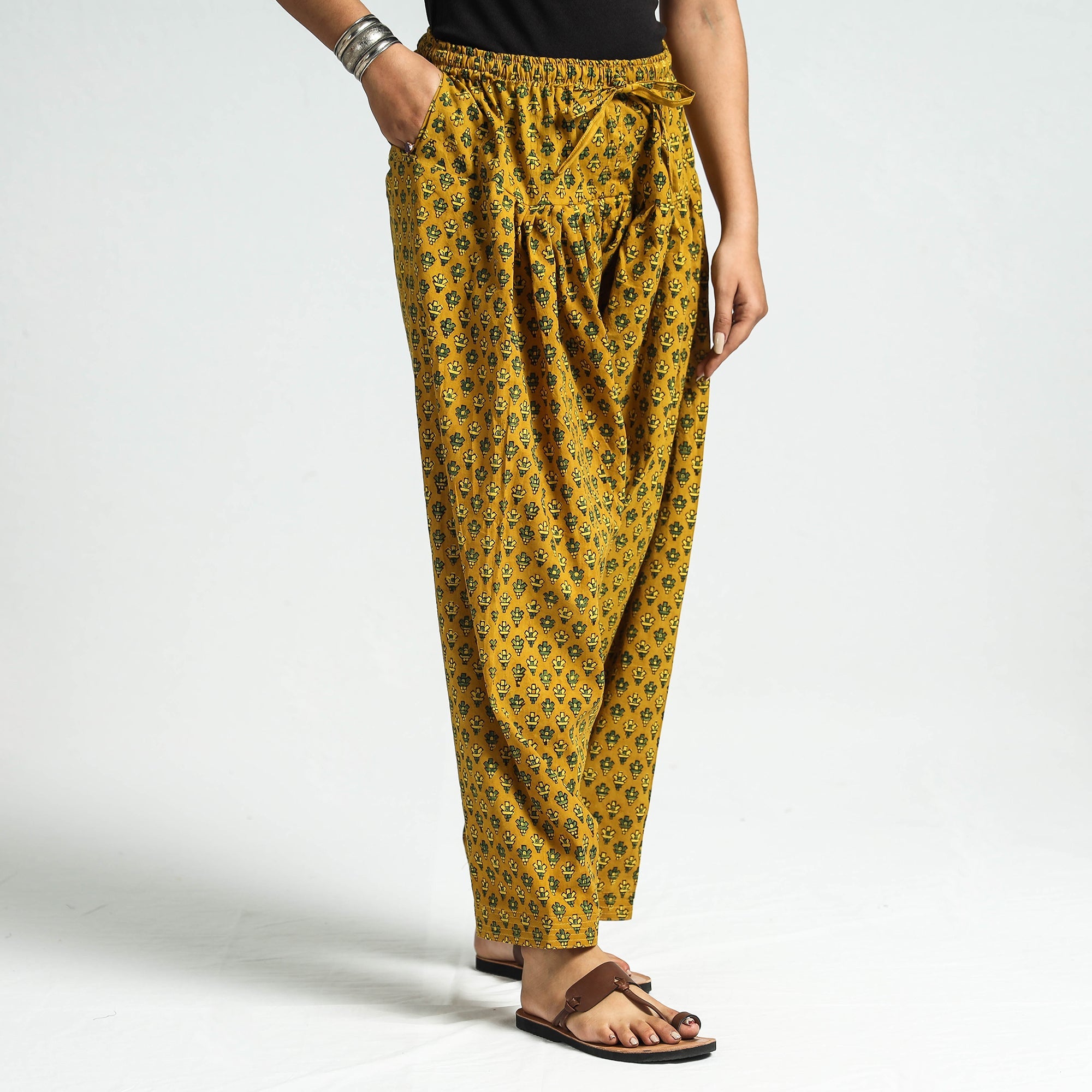 Elevate your style with this stunning ajrakh hand block printed cotton elasticated salwar. Crafted from naturally dyed cotton. This cotton salwar features an elasticized waist with a drawstring element that adds to the comfort quotient. It makes you feel comfortable and stylish all day long. This versatile pant is perfect for daily outings and comes with a convenient side pocket. Stay comfortable and stylish all day with this unique piece.