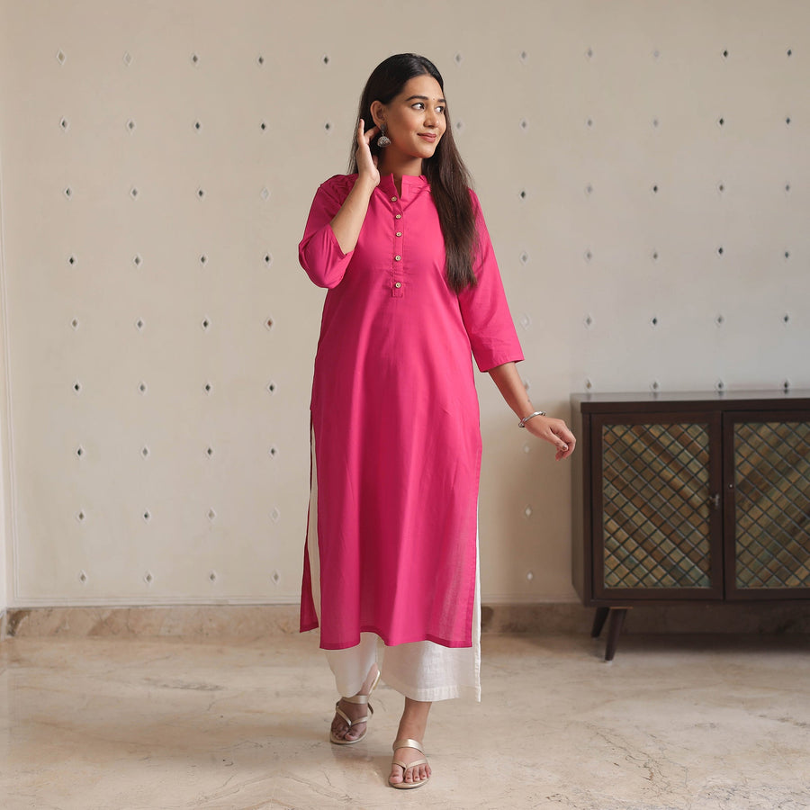 This plain-dyed mulmalai cotton straight kurta is uniquely designed to make you look and feel beautiful. It features a one-side pocket and is made from comfortable mul cotton fabric, ensuring ease and comfort throughout the day. Each piece is meticulously handcrafted by skilled artisans, showcasing their artistry. Mulmalai celebrates the beauty of simplicity, offering a collection that embodies grace, comfort, and effortless style. Embrace the softness and breathability of mul fabric while indulging in the sheer joy of wearing handmade creations.