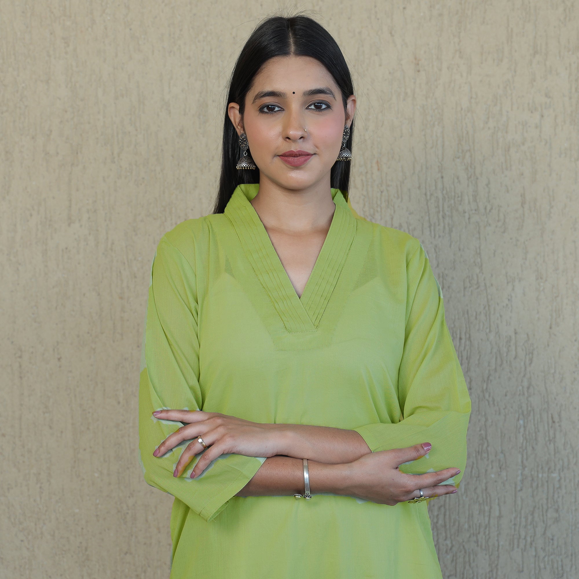 The length of kurta and kurtas is the main difference between them. Kurtas are generally long and reach up to the calf, whereas Kurtis are usually short and reach the waist or hips.