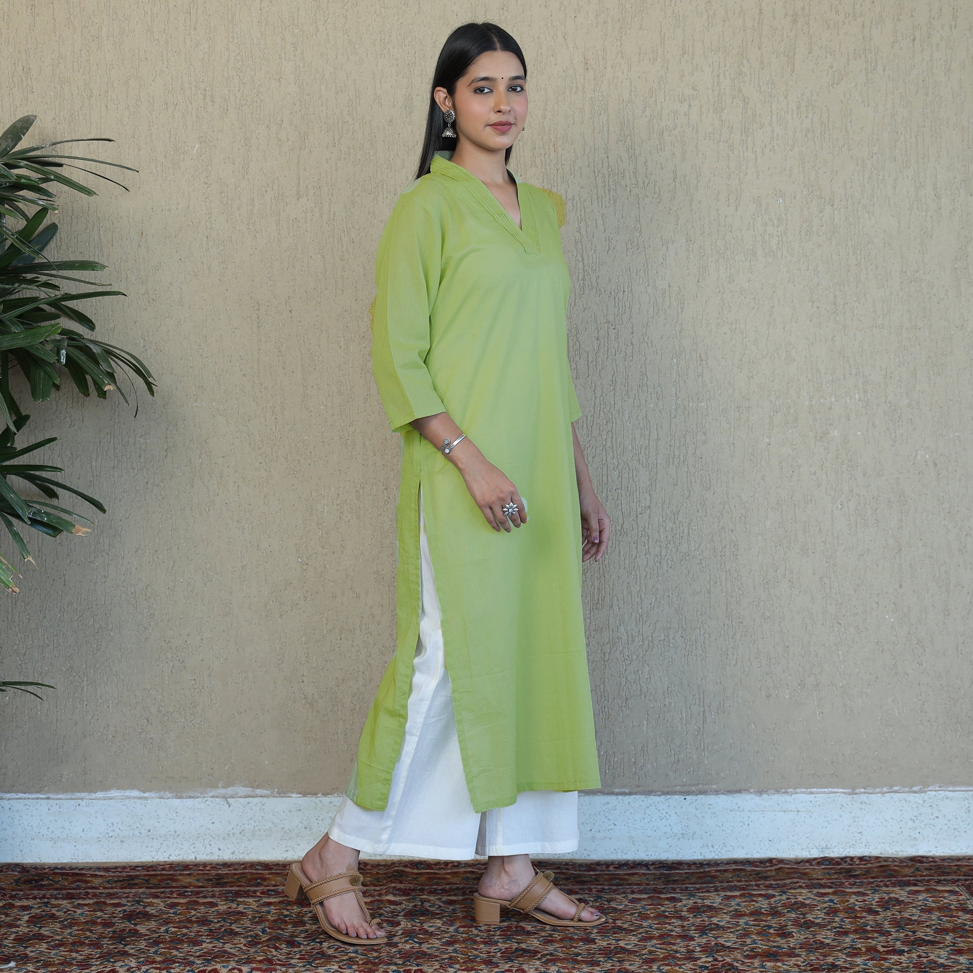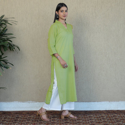 This plain-dyed mulmalai cotton straight kurta is uniquely designed to make you look and feel beautiful. It features a one-side pocket and is made from comfortable mul cotton fabric, ensuring ease and comfort throughout the day. Each piece is meticulously handcrafted by skilled artisans, showcasing their artistry. Mulmalai celebrates the beauty of simplicity, offering a collection that embodies grace, comfort, and effortless style. Embrace the softness and breathability of mul fabric while indulging in the sheer joy of wearing handmade creations.