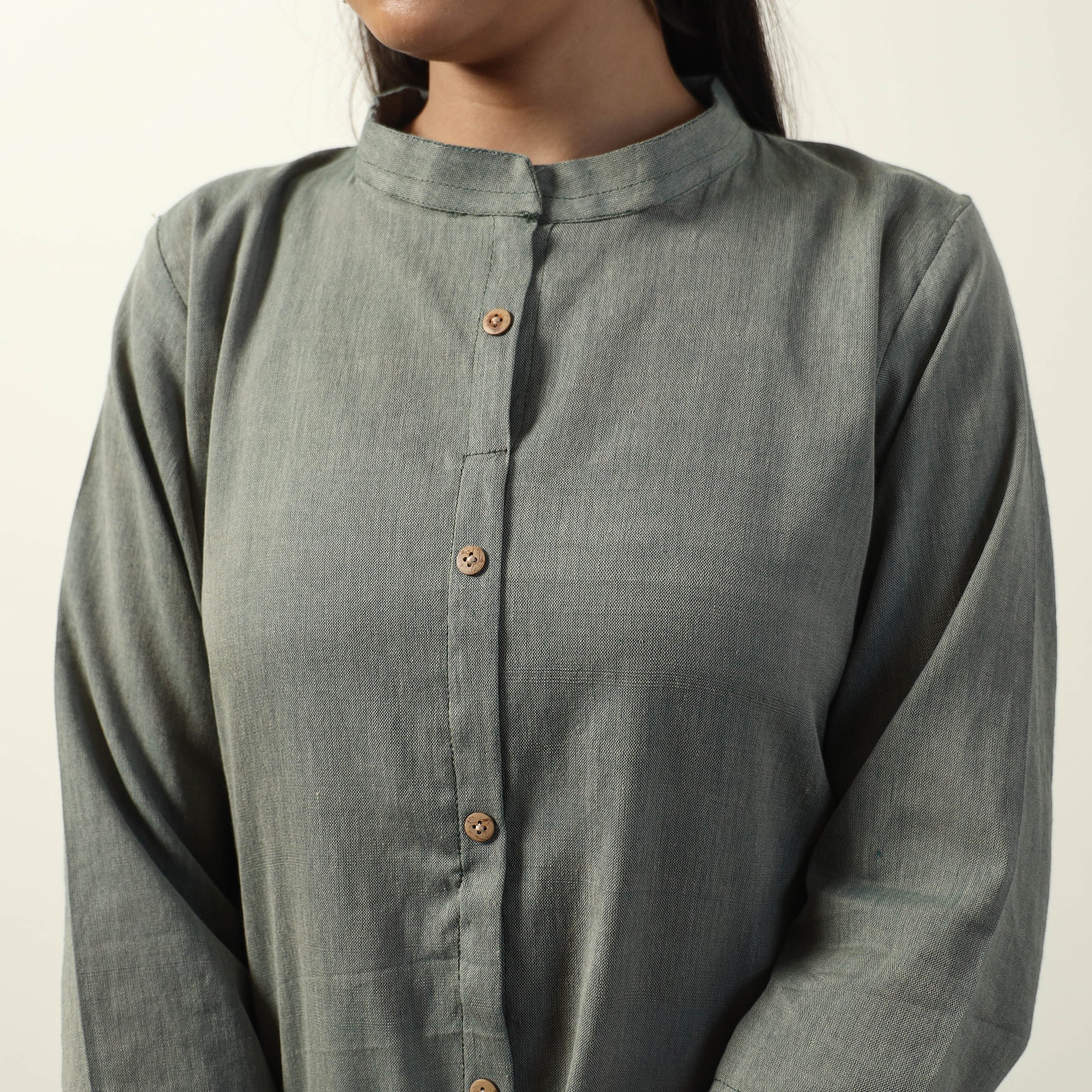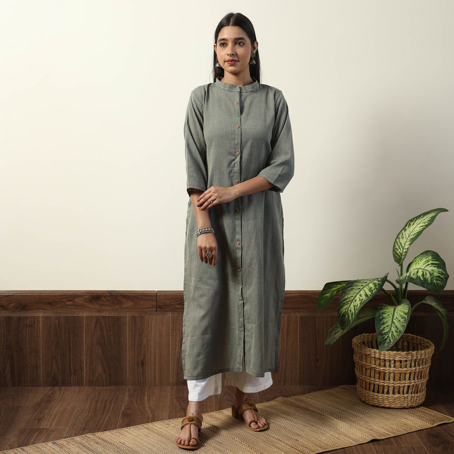 Grey - Jhiri Handloom Cotton Straight Long Kurta