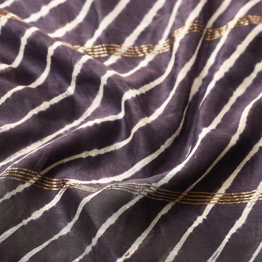 The exquisite craftsmanship of this fine quality leheriya tie-dye chanderi silk cotton handloom stole with a zari border. The beautiful wavy patterns on this stole were created using the traditional leheriya tie-dye technique by the master artisan family of Badshah Miyan in Rajasthan. Made with azo-free dyes. The blend of chanderi silk and cotton gives it a gossamer look and a luxurious feel. Complete with a zari border, this stole is the perfect accessory to elevate your outfit and add a touch of elegance to any occasion.