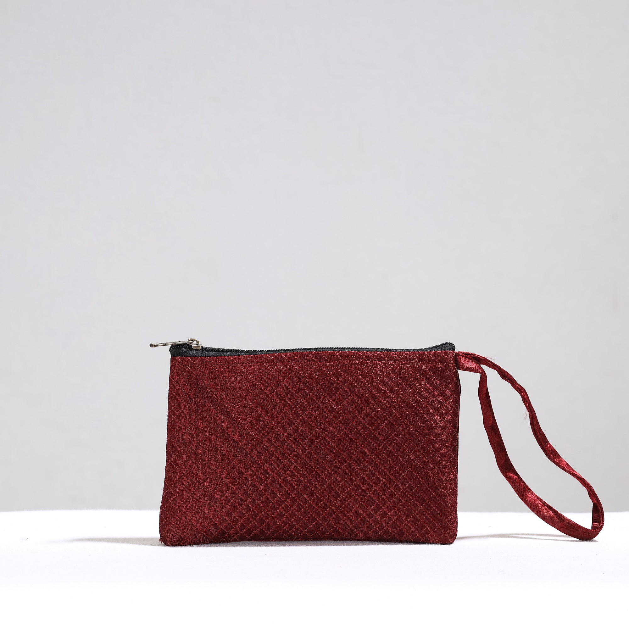 This maroon exquisite Pakko hand embroidery mirror work mashru silk mobile pouch is a wonderful piece of art, showcasing the traditional craftsmanship of the Kutch region of Gujarat. Crafted from sumptuous mashru silk, this pouch seamlessly blends heritage with contemporary elegance. It has a cotton fabric lining and a zip main closure. The pouch is designed with a convenient handle, making it easy to carry and secure your mobile device.