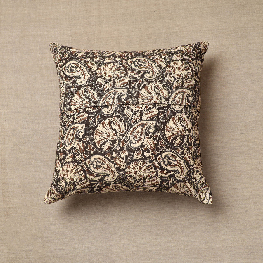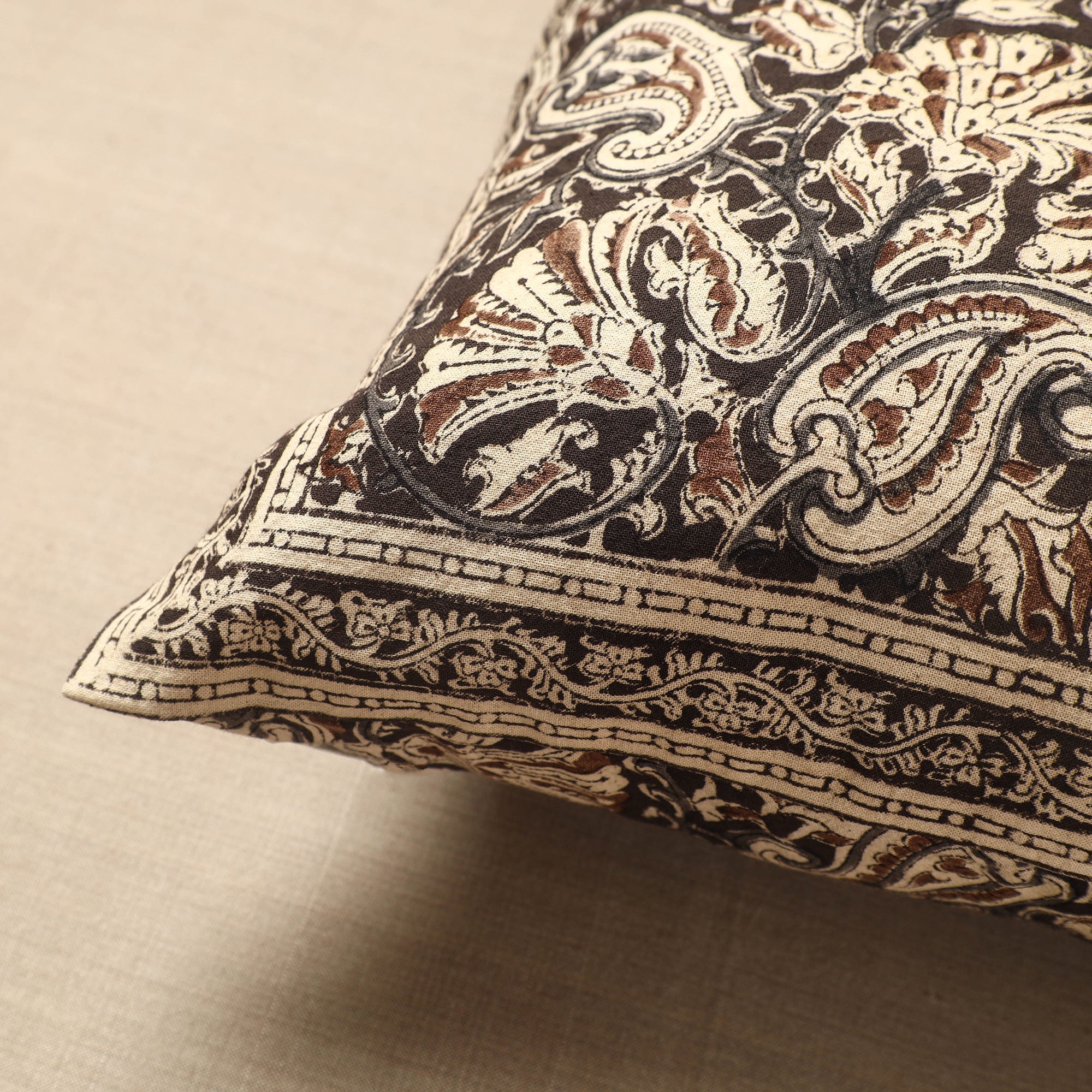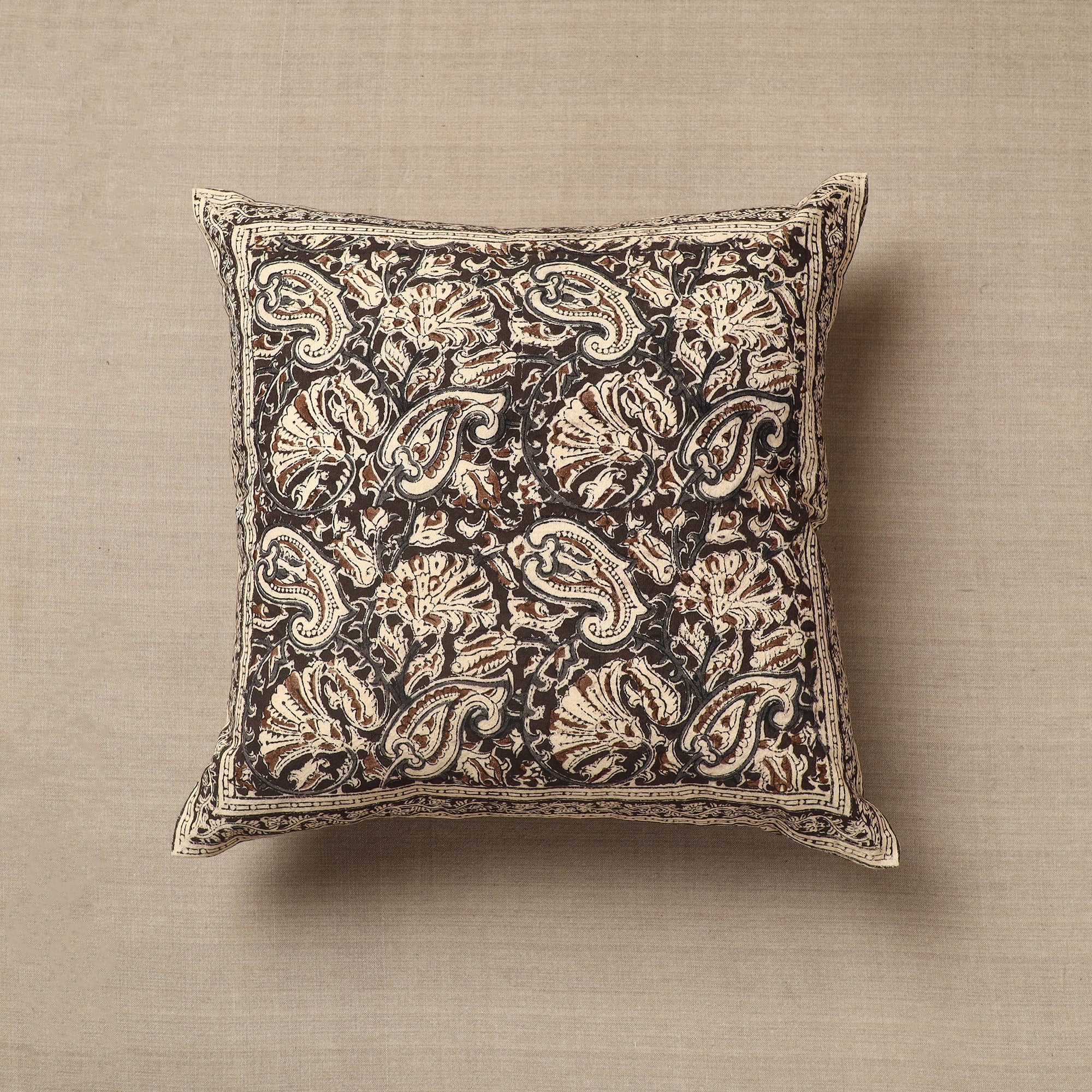 Beautiful brown cushion cover made of fine quality cotton fabric that has been skillfully block printed by the artisans of Pedana using the traditional technique of kalamkari. The cover features an assortment of hand-block-printed motifs that are inspired by the traditional kalamkari paintings. Kalamkari is one of the oldest and most complex techniques of block printing, and this cushion cover is a great example of the exquisite craftsmanship that goes into creating such works of art. It will make a wonderful addition to any home decor, adding a touch of traditional elegance and charm.