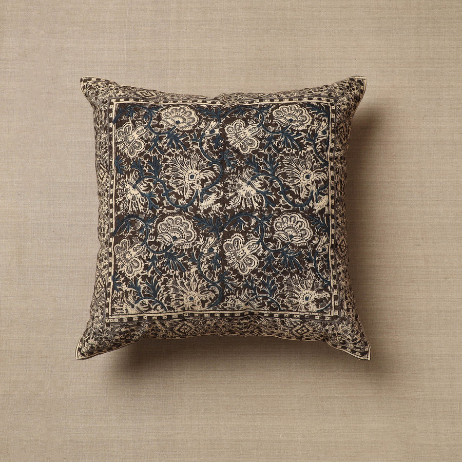 Beautiful black cushion cover made of fine quality cotton fabric that has been skillfully block printed by the artisans of Pedana using the traditional technique of kalamkari. The cover features an assortment of hand-block-printed motifs that are inspired by the traditional kalamkari paintings. Kalamkari is one of the oldest and most complex techniques of block printing, and this cushion cover is a great example of the exquisite craftsmanship that goes into creating such works of art. It will make a wonderful addition to any home decor, adding a touch of traditional elegance and charm.