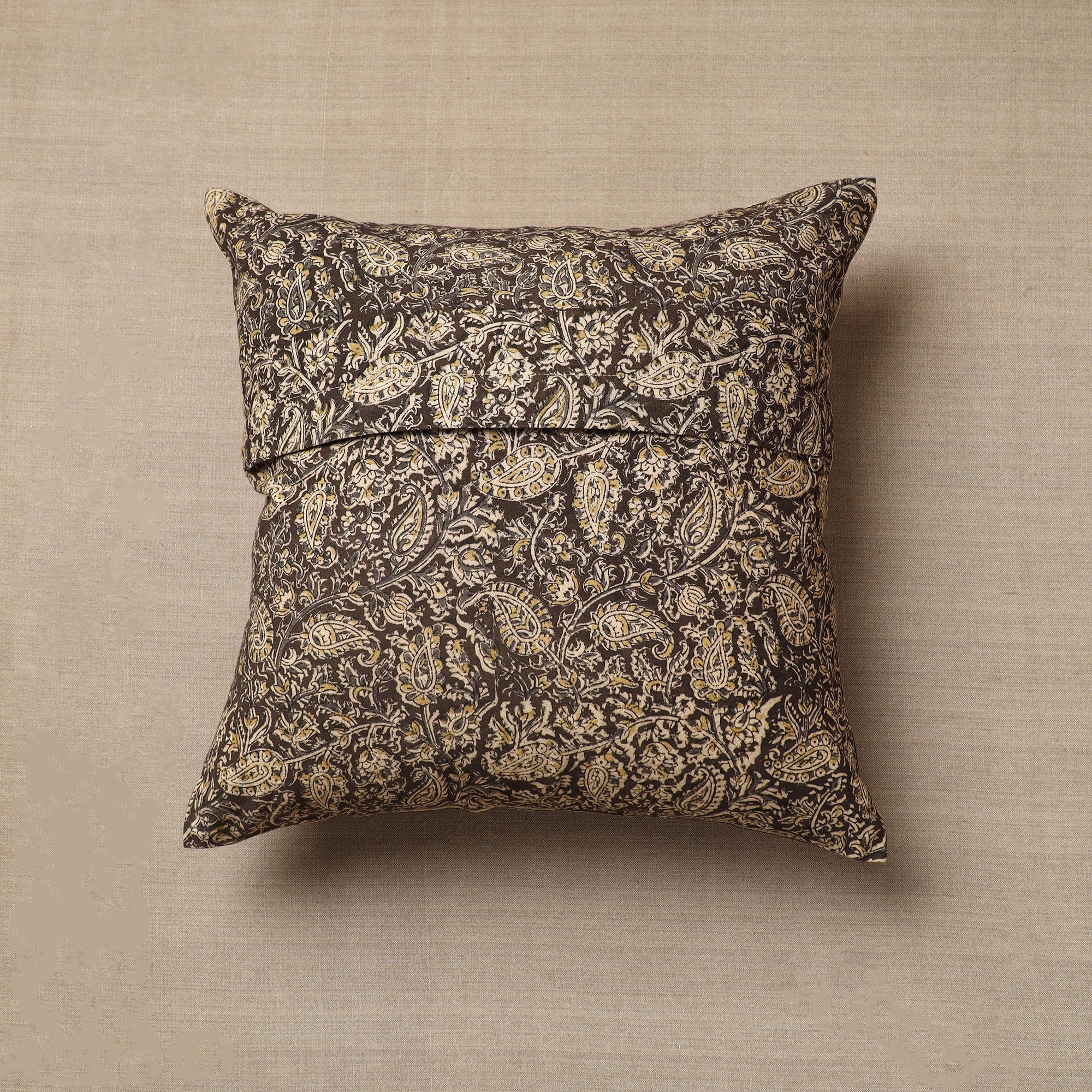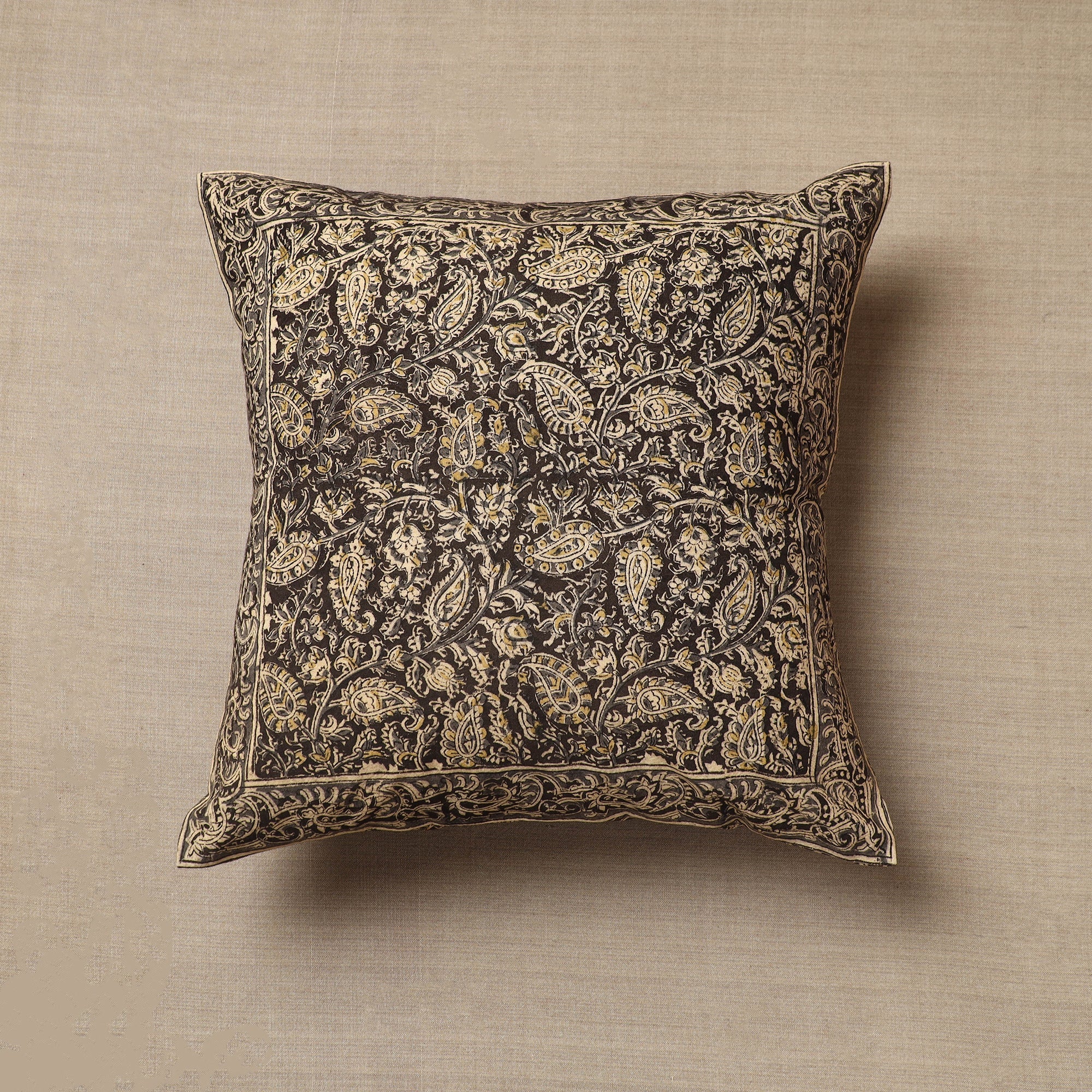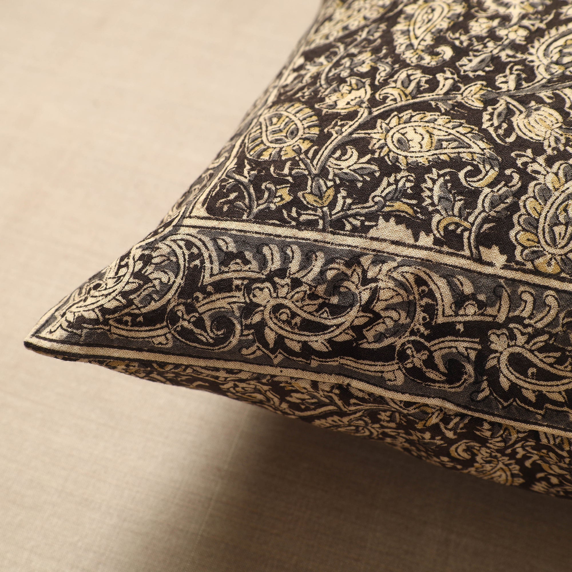Beautiful black cushion cover made of fine quality cotton fabric that has been skillfully block printed by the artisans of Pedana using the traditional technique of kalamkari. The cover features an assortment of hand-block-printed motifs that are inspired by the traditional kalamkari paintings. Kalamkari is one of the oldest and most complex techniques of block printing, and this cushion cover is a great example of the exquisite craftsmanship that goes into creating such works of art. It will make a wonderful addition to any home decor, adding a touch of traditional elegance and charm.