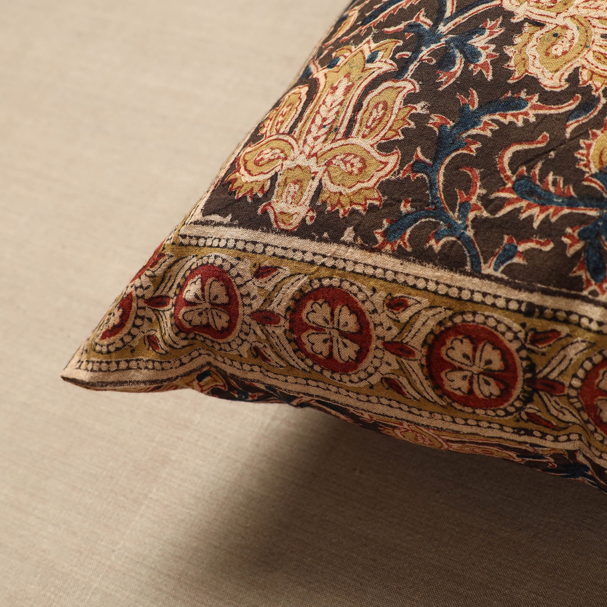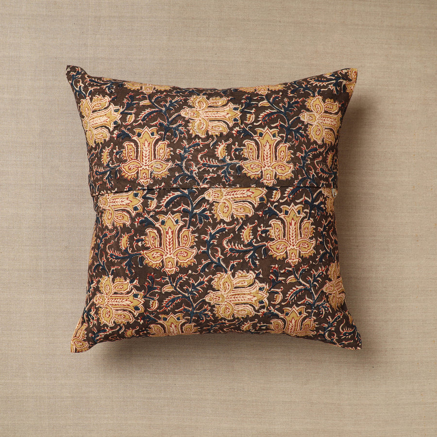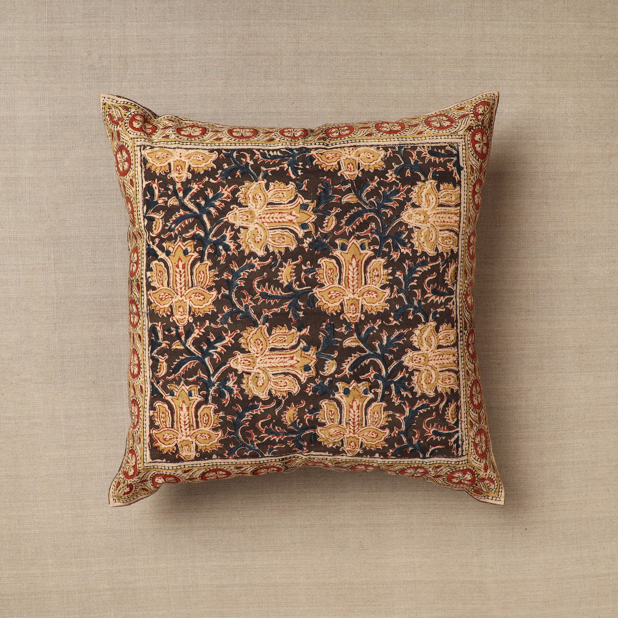 Beautiful cushion cover made of fine quality brown cotton fabric that has been skillfully block printed by the artisans of Pedana using the traditional technique of kalamkari. The cover features an assortment of hand-block-printed motifs that are inspired by the traditional kalamkari paintings. Kalamkari is one of the oldest and most complex techniques of block printing, and this cushion cover is a great example of the exquisite craftsmanship that goes into creating such works of art. It will make a wonderful addition to any home decor, adding a touch of traditional elegance and charm.