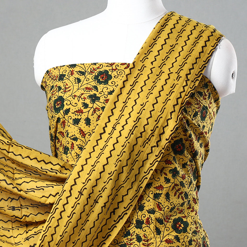 • Yellow - 3pc printed natural dyed cotton unstitched suit