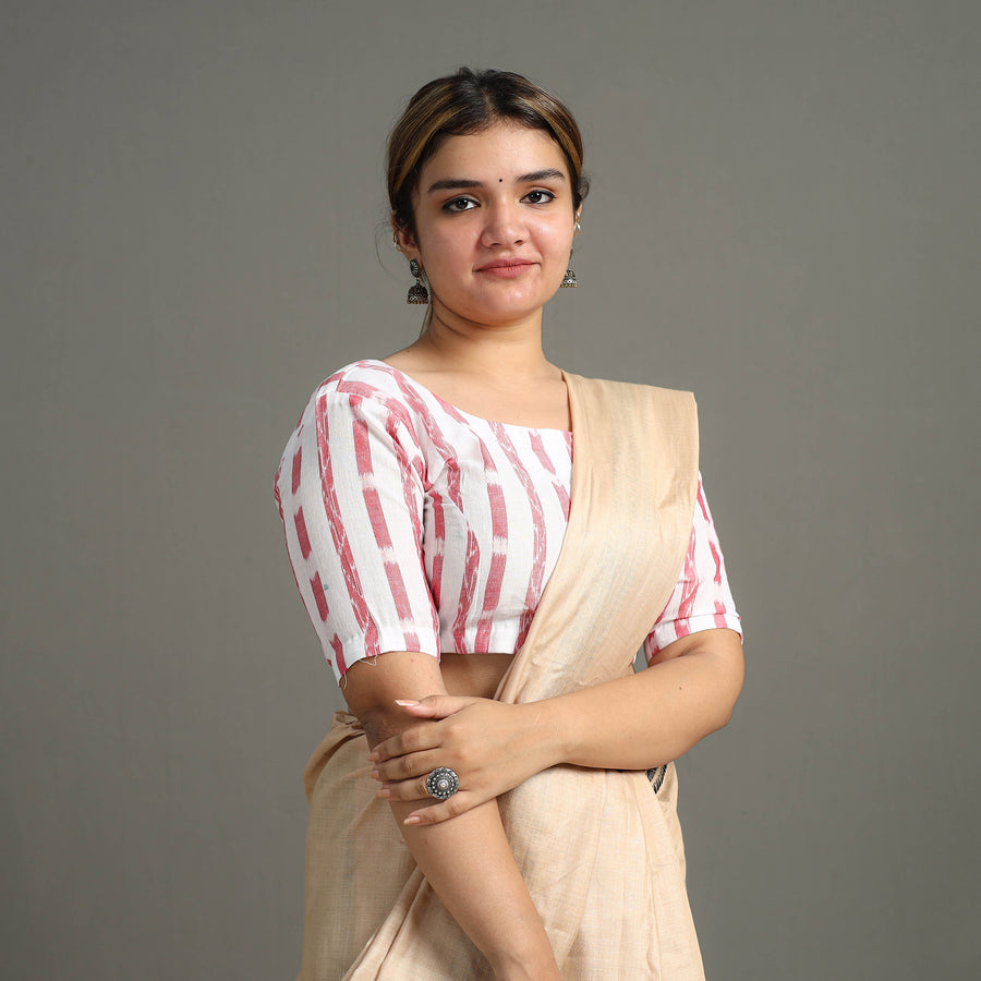 Experience the timeless artistry of sambalpuri Ikat with this handcrafted cotton blouse piece. With versatile mix-and-match styling, this blouse pairs beautifully with a variety of sarees. Elevate your wardrobe with an artisan-crafted cotton-stitched ikat blouse.