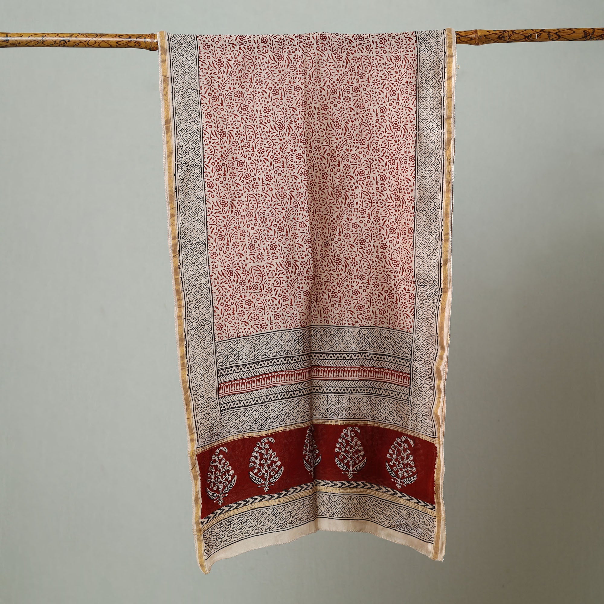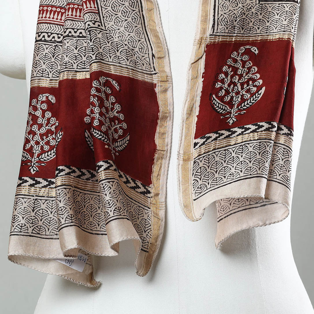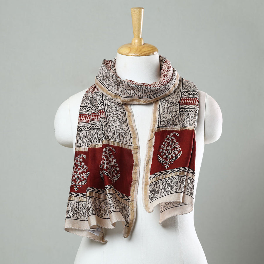 Elevate your style with the special red bagh block-printed chanderi silk cotton stole crafted by the skilled artisan Mohammed Bilal Khatri. This stole is a masterpiece created using natural dyes and the traditional handblock printing technique practiced in Bagh, Madhya Pradesh. The stole showcases the beauty of natural dye and adds a touch of elegance to your everyday attire, leaving a lasting impression wherever you go.