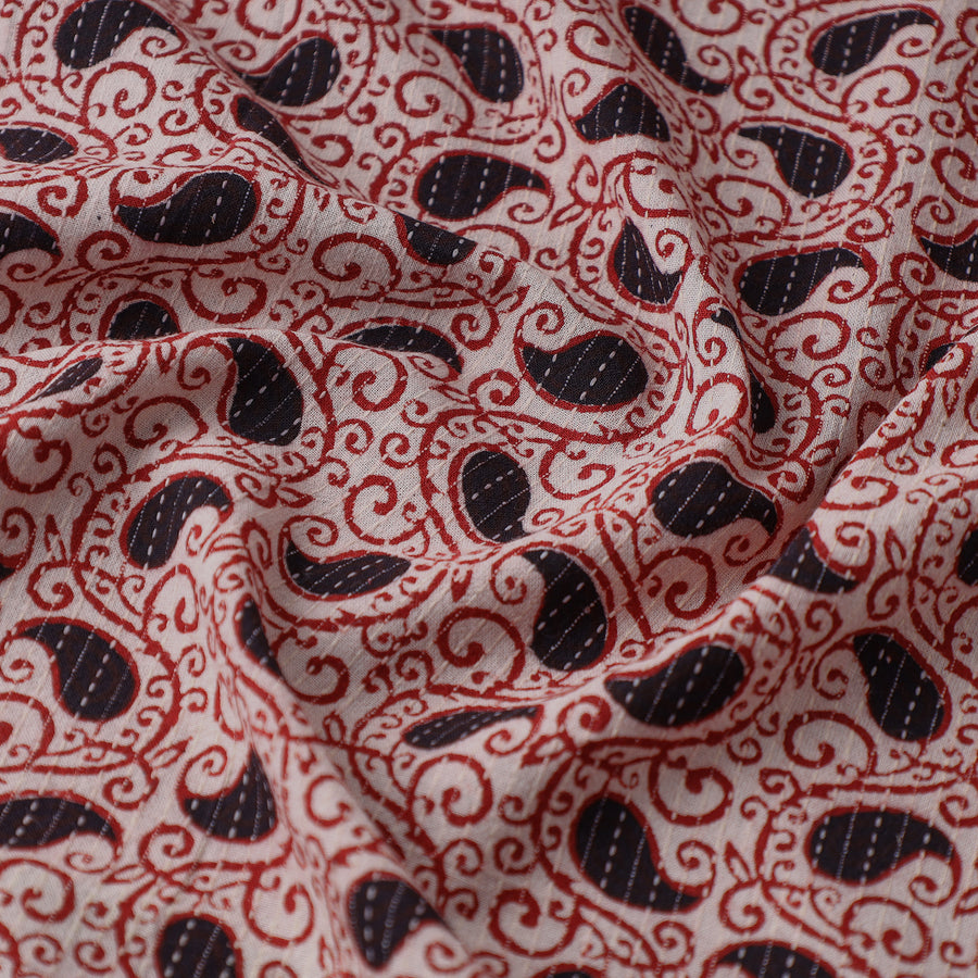 Bagh layouts are dramatic with the use of black and red alternately on a white background. Its production process is manually painstaking. Though the techniques and designs are age-old the prints retain their contemporary appeal.