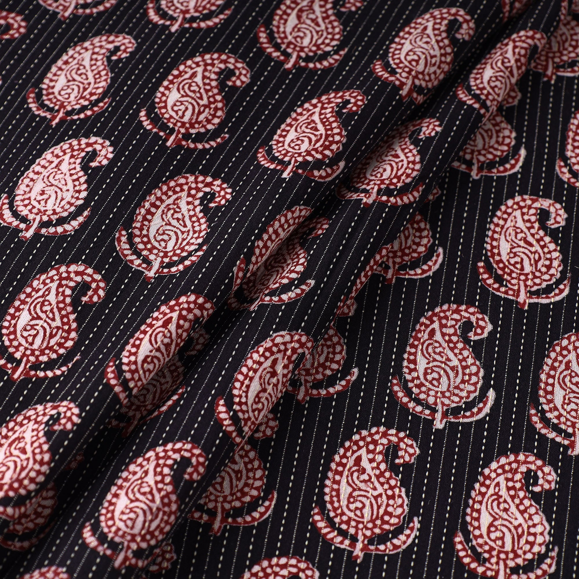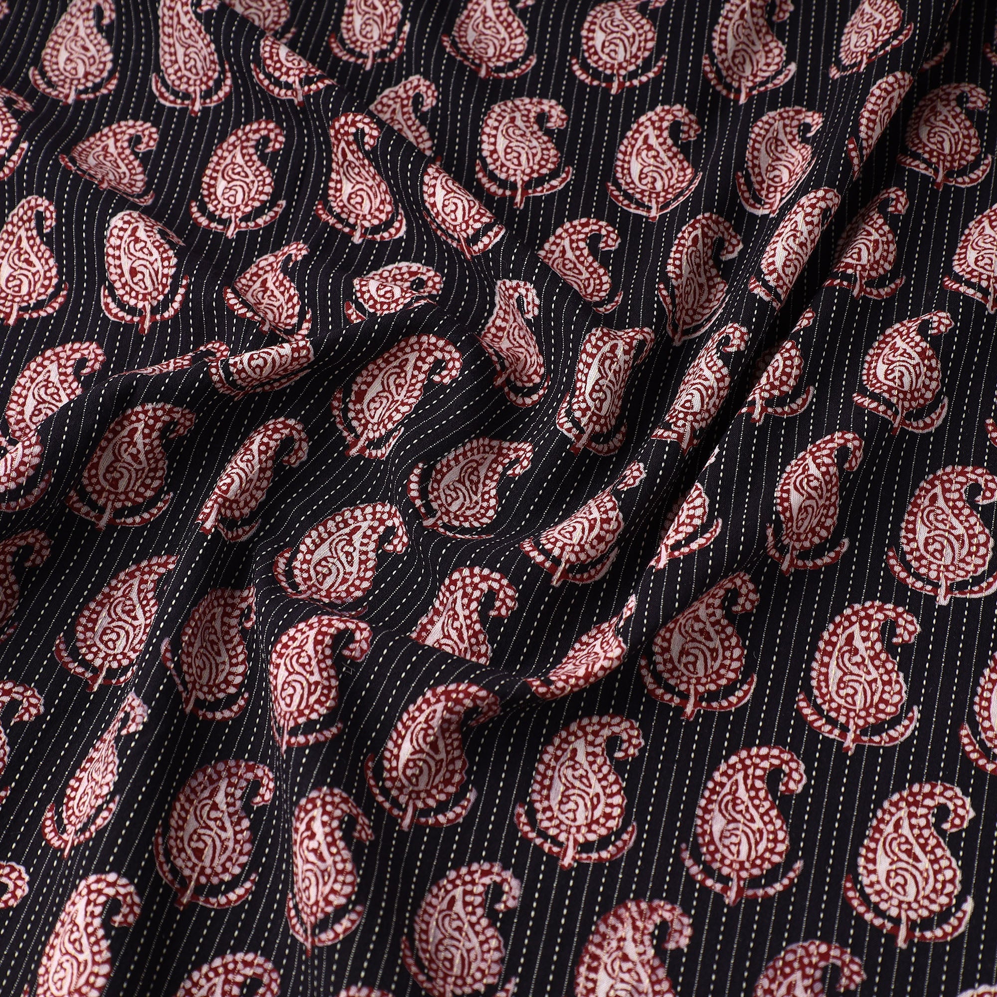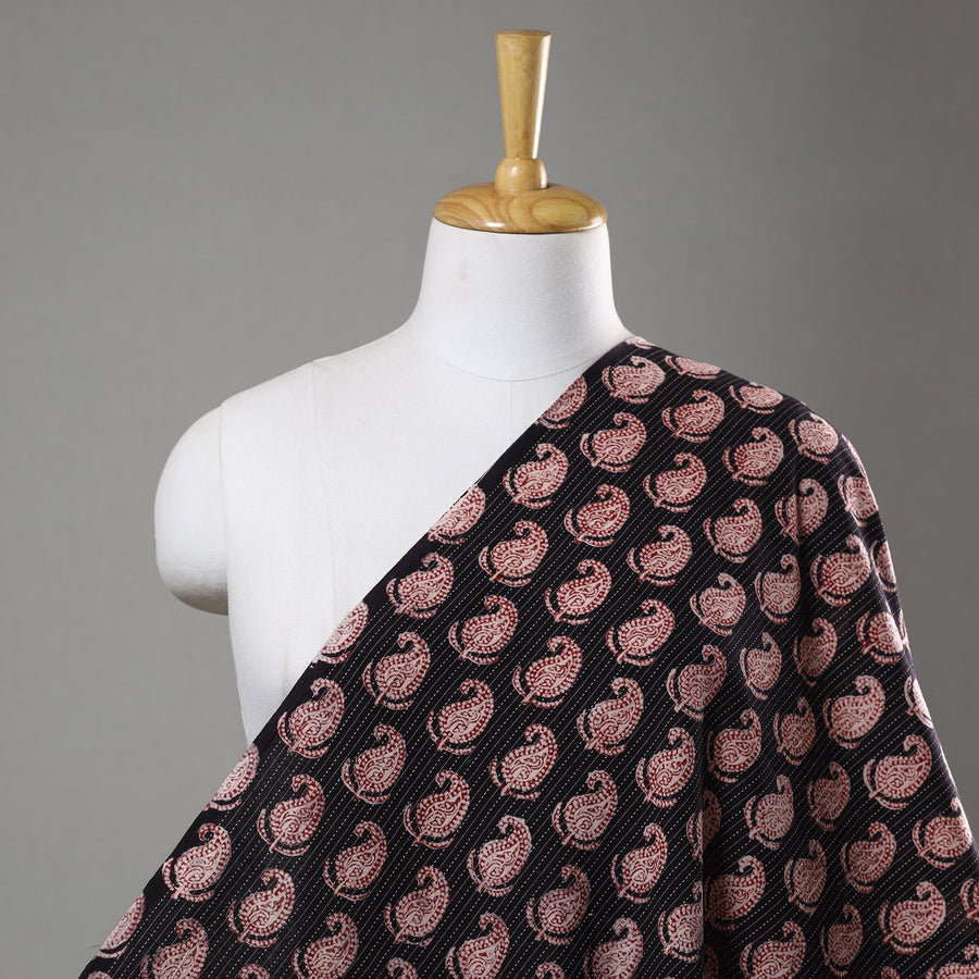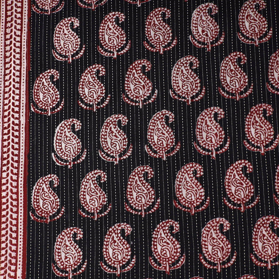 Fine quality black bagh block printed Kantha-style cotton fabric, made using natural dyes through traditional process of hand block printing by Umar Faruk Khatri, practiced in Bagh, the Dhar district of Madhya Pradesh. This fabric is perfect for creating stylish garments, home decor, and accessories that reflect cultural heritage and contemporary flair.