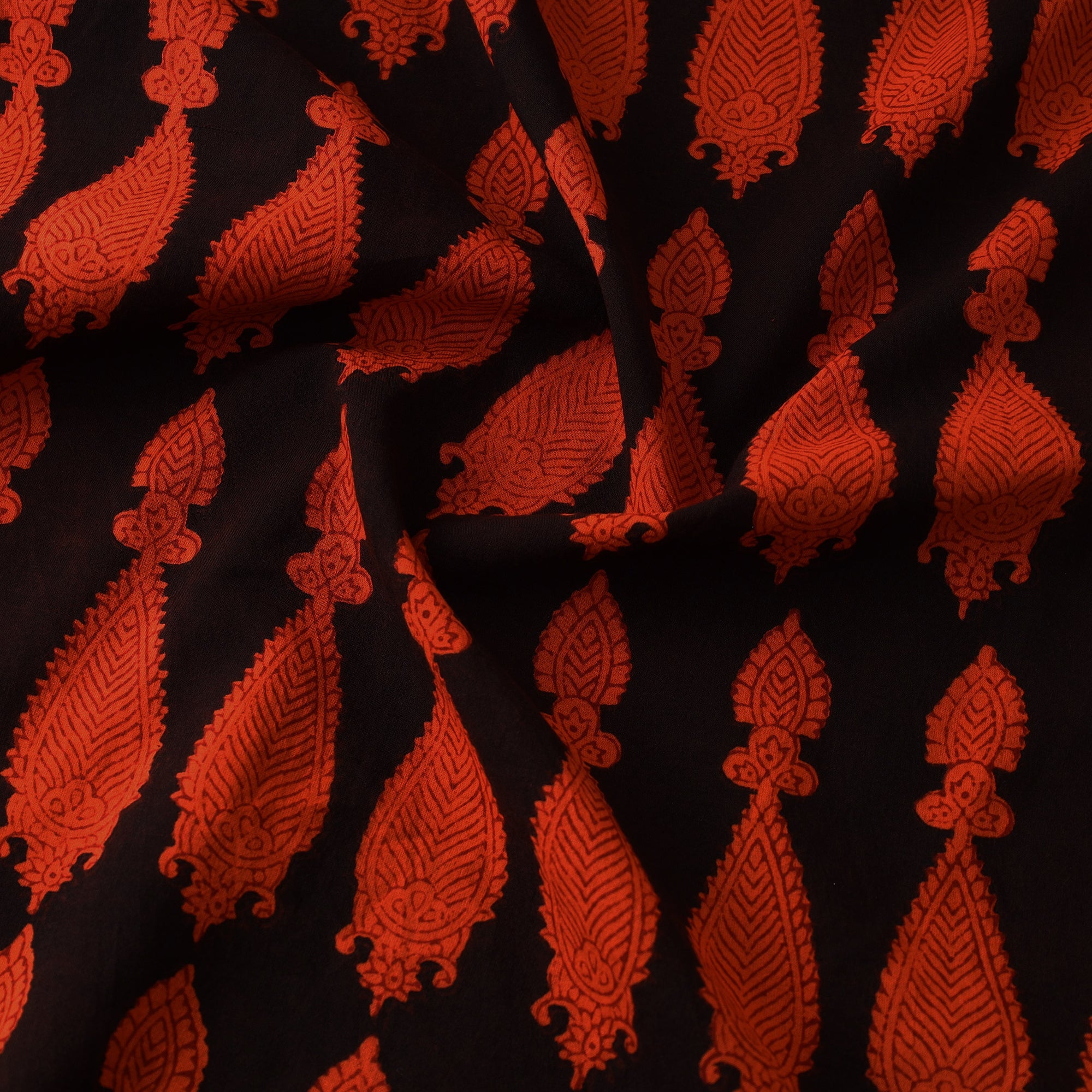 This fine-quality red bagh hand block-printed cotton fabric is made using natural dyes through traditional processes by master artisan Umar Faruk Khatri, practiced in Bagh, the Dhar district of Madhya Pradesh. The intricate and unique patterns make this fabric a perfect choice for a variety of projects.