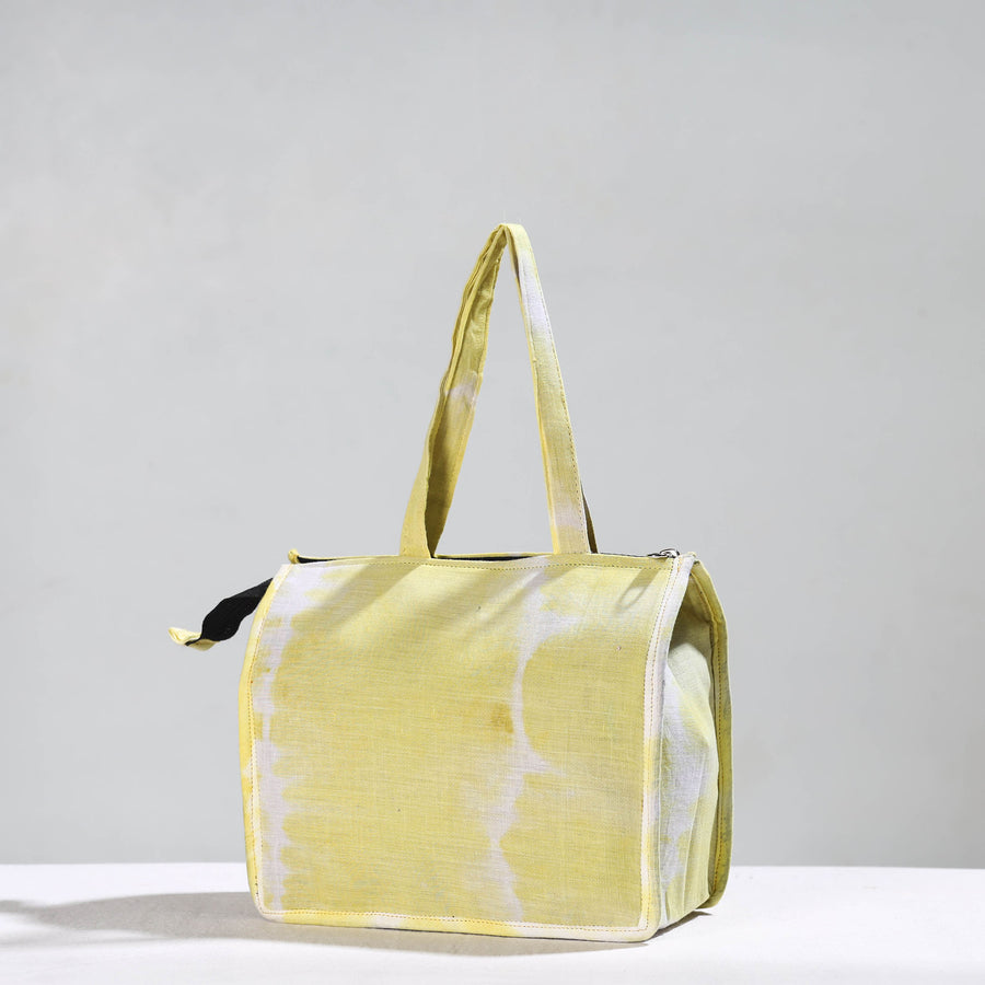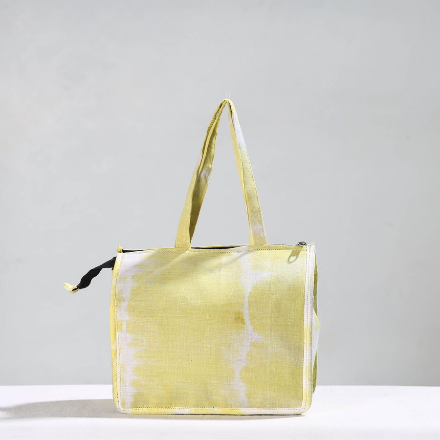 Experience timeless beauty with our yellow handcrafted shibori tie-dye cotton hand bag. The carefully crafted, intricate shibori tie-dye pattern exudes sophistication. Perfect for daily use, it offers ample space for essentials, as well as an internal zipped pocket and a convenient front pocket, which makes it a stylish and functional accessory.