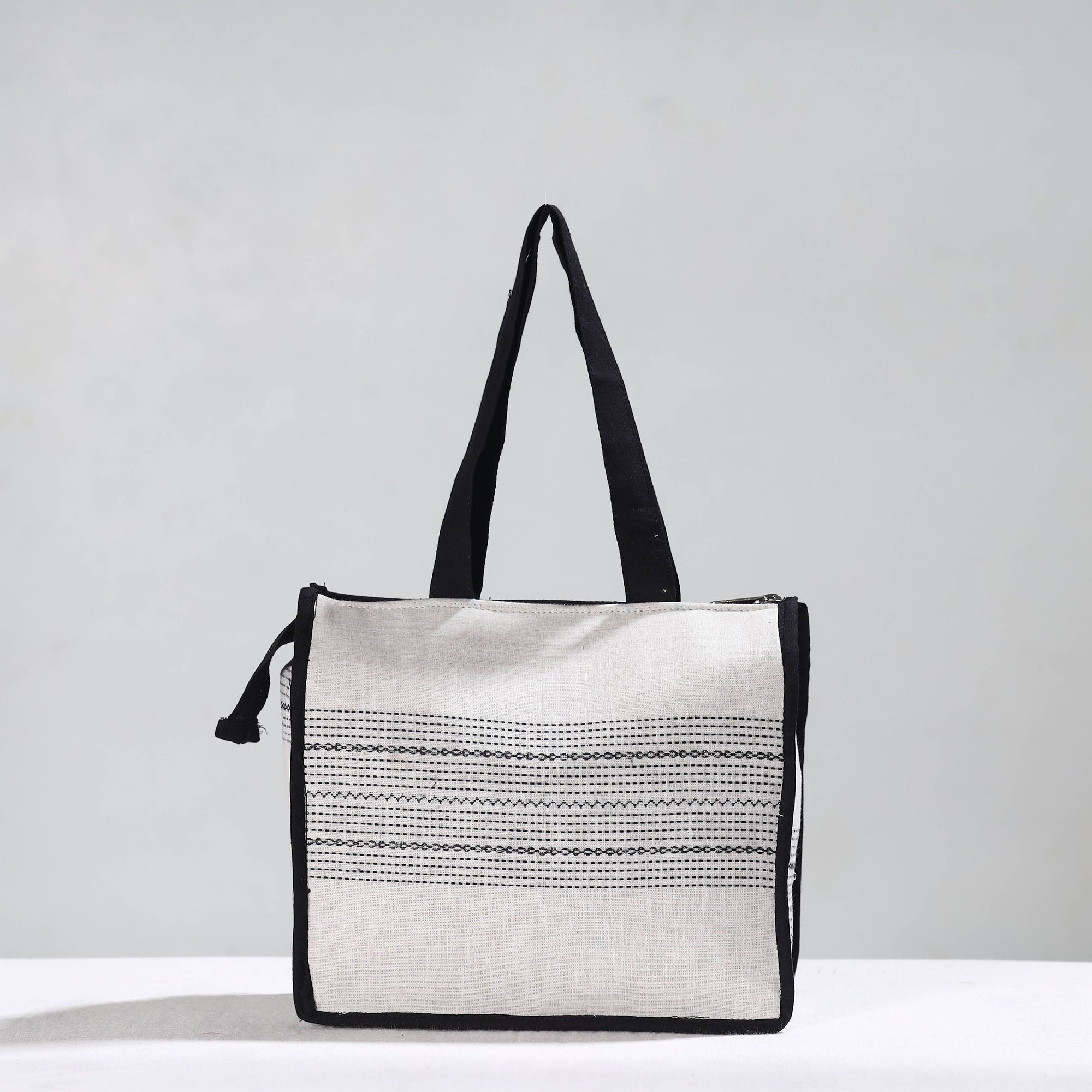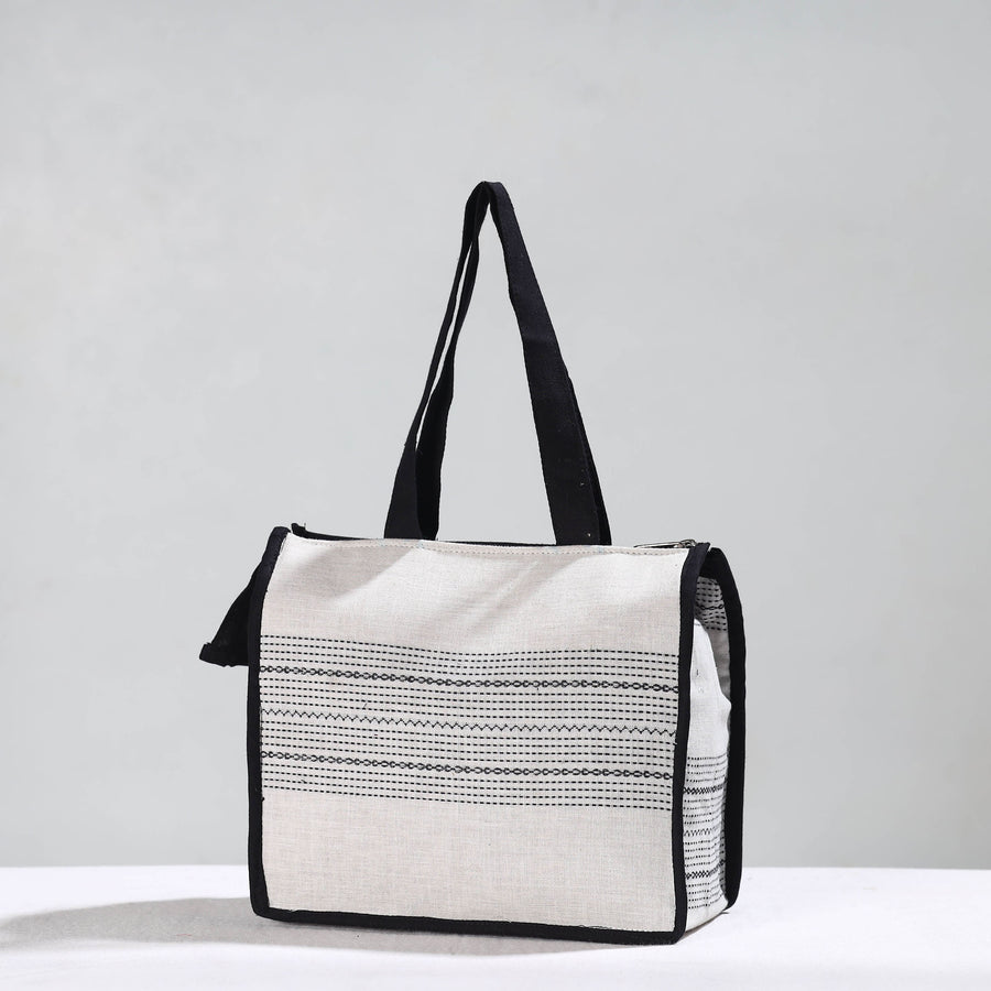 Experience timeless beauty with our white handcrafted jacquard cotton hand bag. The carefully crafted, intricate jacquard pattern exudes sophistication. Perfect for daily use, it offers ample space for essentials, as well as an internal zipped pocket and a convenient front pocket, which makes it a stylish and functional accessory.