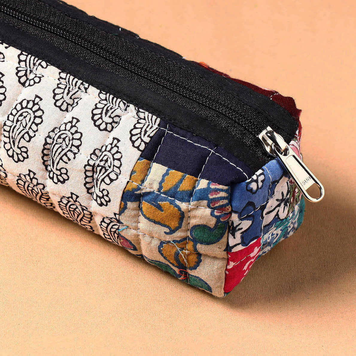 Experience the perfect blend of artistry and utility with our handcrafted multicolor quilted patchwork multipurpose pencil pouch. This pouch is made from cotton fabric with a quilted filling. Safely store your pencils, pens, and other essentials in style. Perfect for students, artists, or anyone who appreciates handmade elegance and functionality in their everyday carry.