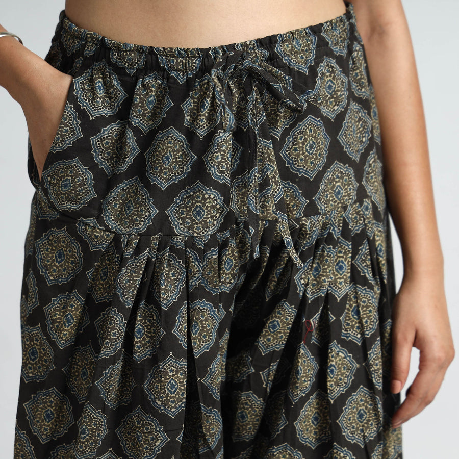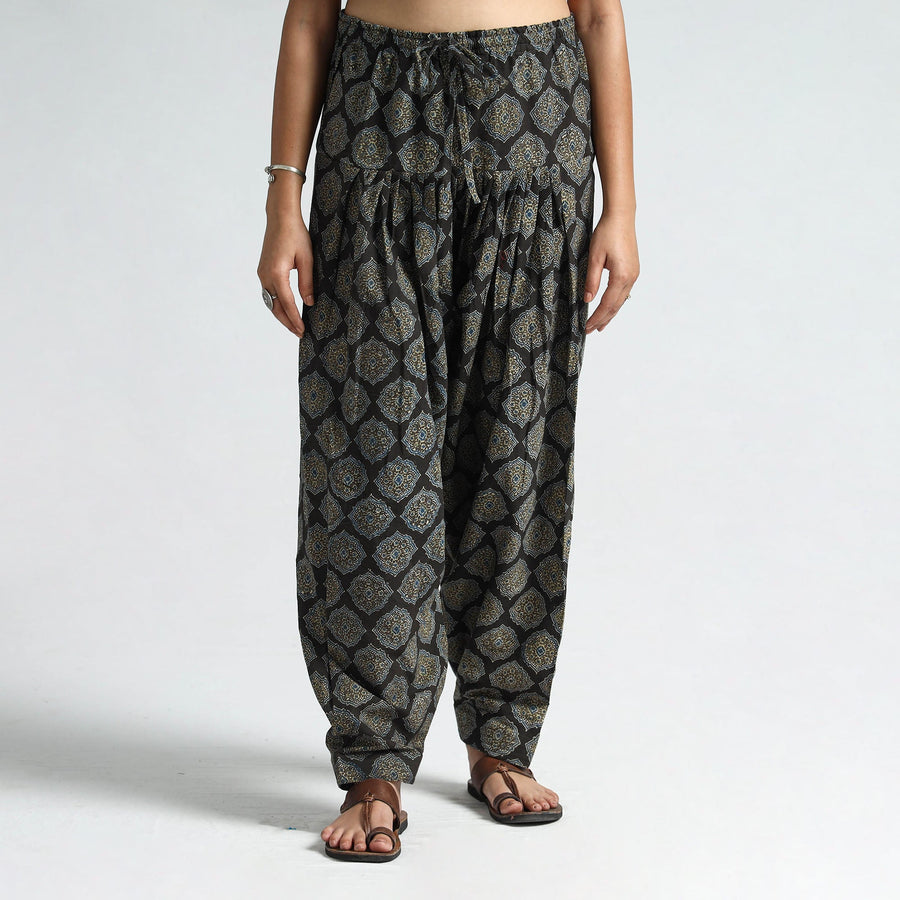 Elevate your style with this stunning ajrakh hand-block printed cotton elasticated salwar. This cotton salwar features an elasticized waist with a drawstring element that adds to the comfort quotient. It makes you feel comfortable and stylish all day long. This versatile salwar is perfect for daily outings and comes with a convenient side pocket. Stay comfortable and stylish all day with this unique piece.
