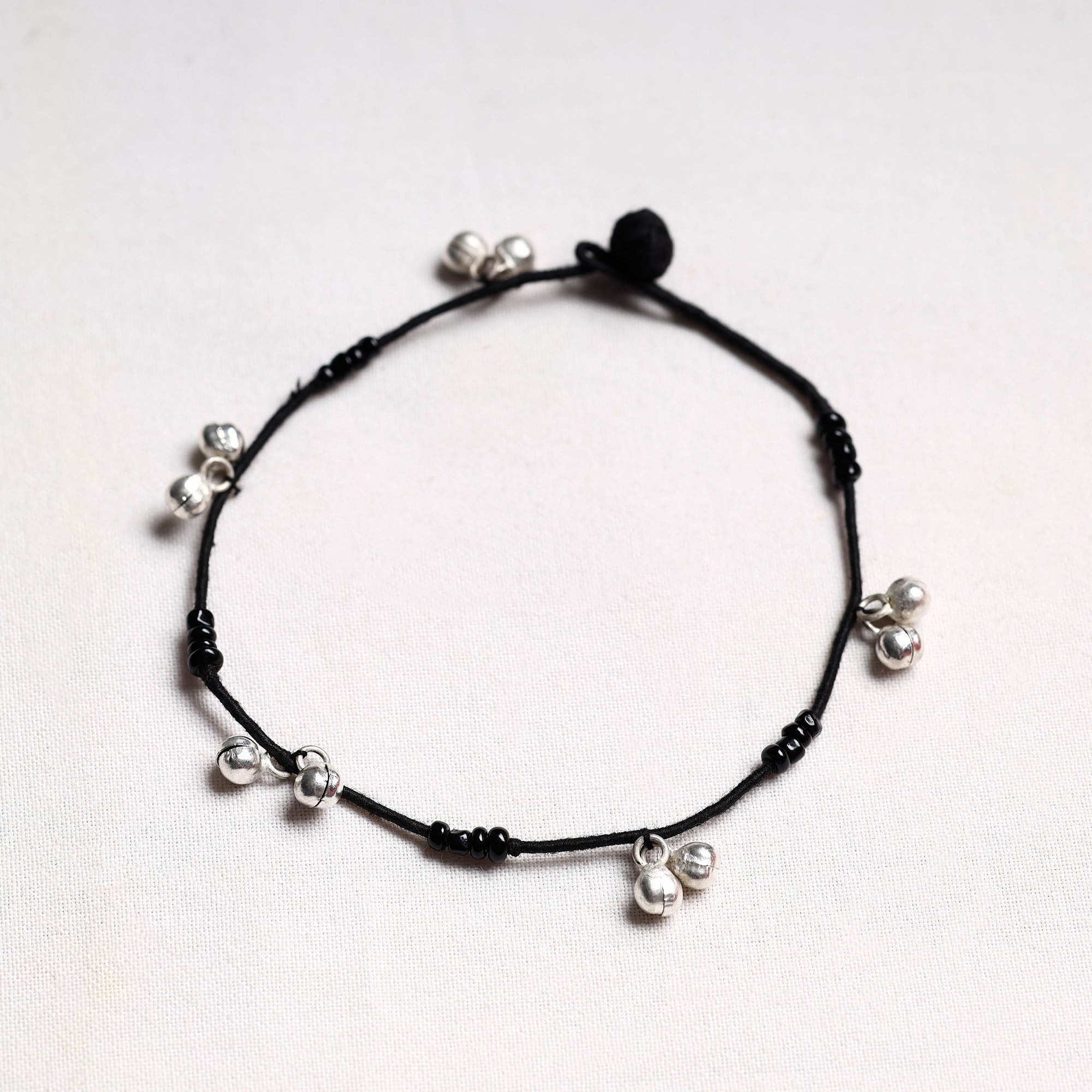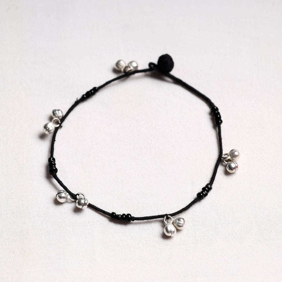 Black - Handcrafted Patwa Thread & Ghungroo Work Anklet 07