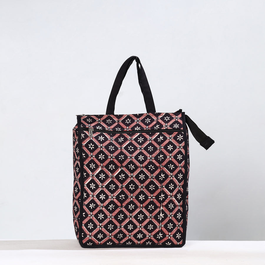 Enhance your shopping routine with our black handmade bagh block printed cotton shopping bag. Crafted from premium cotton, it seamlessly blends durability and style. The spacious design accommodates daily essentials, making it a versatile accessory. Textured with handmade textiles from India, this bag serves practical purposes and also showcases artisanal craftsmanship.