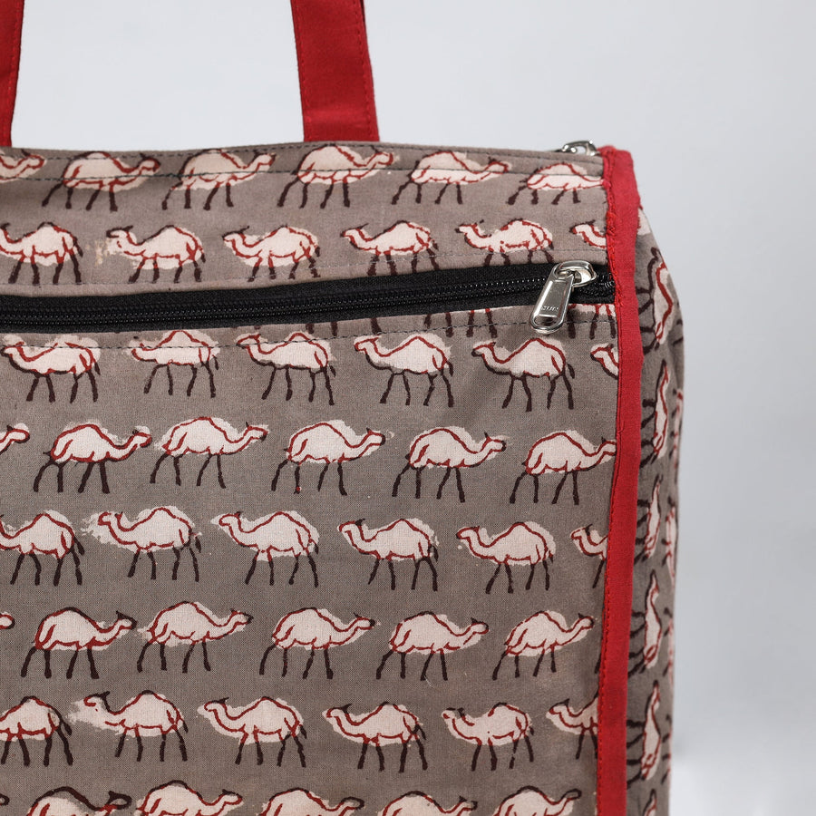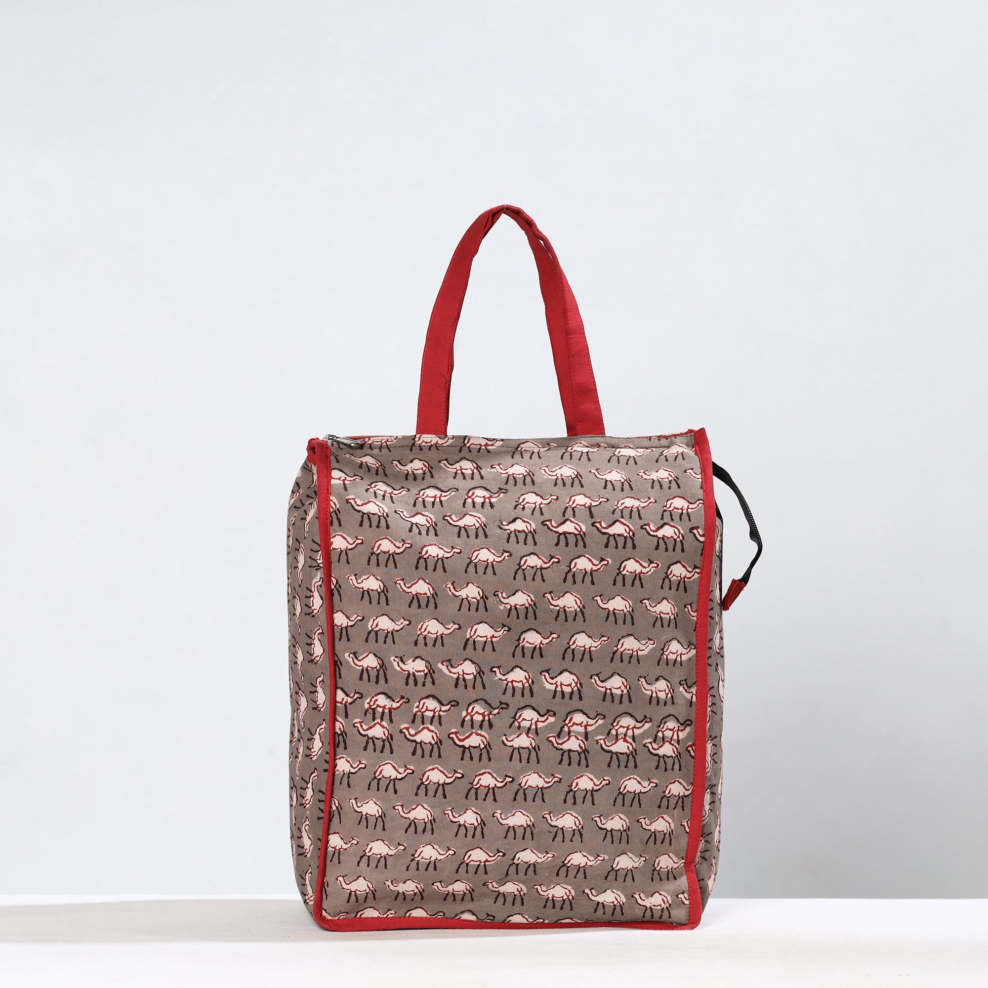 Enhance your shopping routine with our brown handmade bindaas block printed cotton shopping bag. Crafted from premium cotton, it seamlessly blends durability and style. The spacious design accommodates daily essentials, making it a versatile accessory. Textured with handmade textiles from India, this bag serves practical purposes and also showcases artisanal craftsmanship.