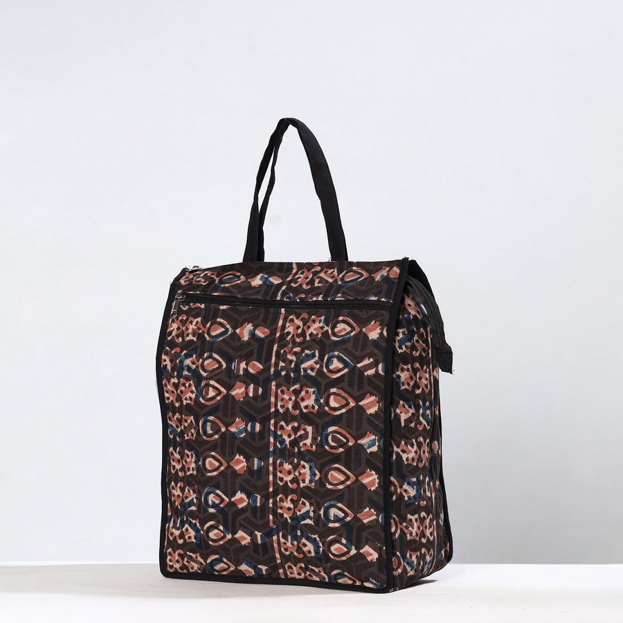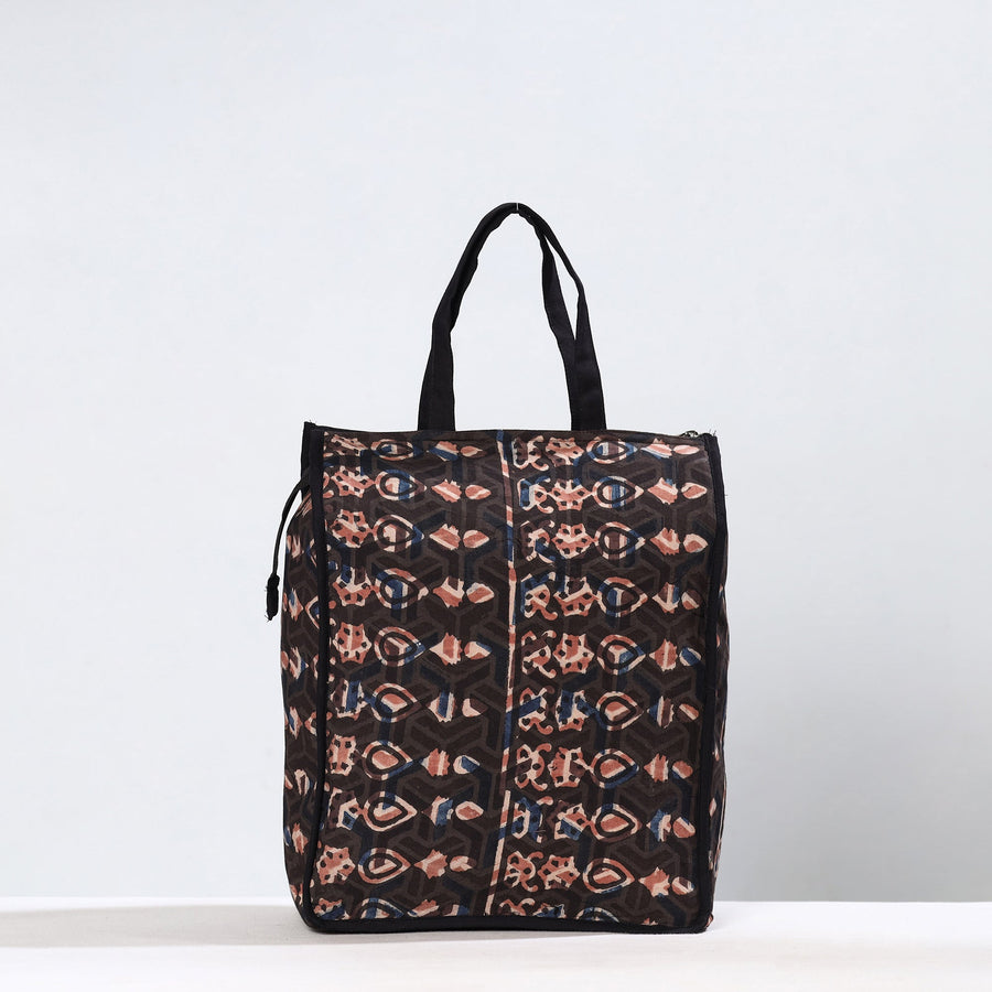 Black - Handmade Bagru Block Printed Cotton Shopping Bag 21