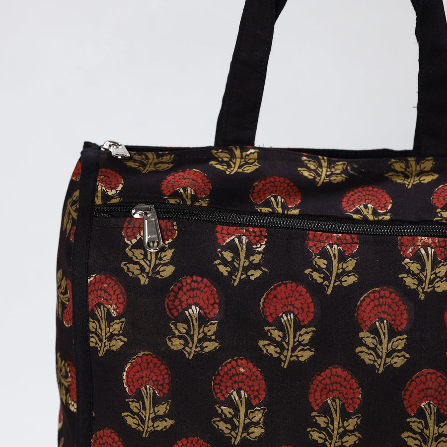 Enhance your shopping routine with our black handmade ajrakh block-printed cotton shopping bag. Crafted from premium cotton, it seamlessly blends durability and style. The spacious design accommodates daily essentials, making it a versatile accessory. Textured with handmade textiles from India, this bag serves practical purposes and also showcases artisanal craftsmanship.
