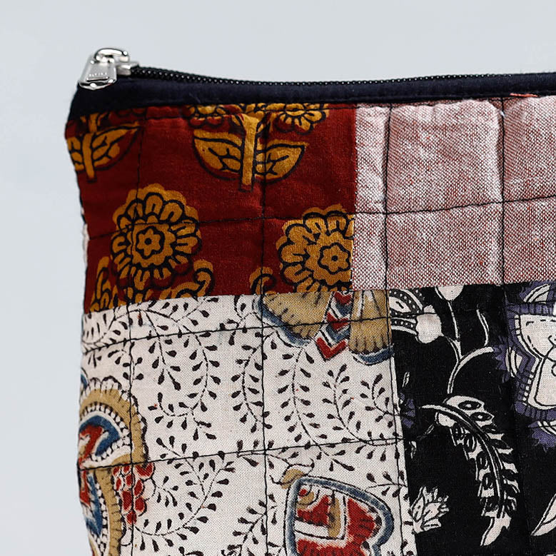 This handmade multipurpose utility pouch made from printed cotton fabric with patchwork quilted filing provides ample space to keep most of your essentials. Textured with handmade textiles from India. Whether you use it as a makeup pouch, travel organizer, or for everyday use, this utility pouch is a perfect blend of fashion and functionality. Carry your essentials in this charming pouch and add a touch of handmade luxury to your daily routine.