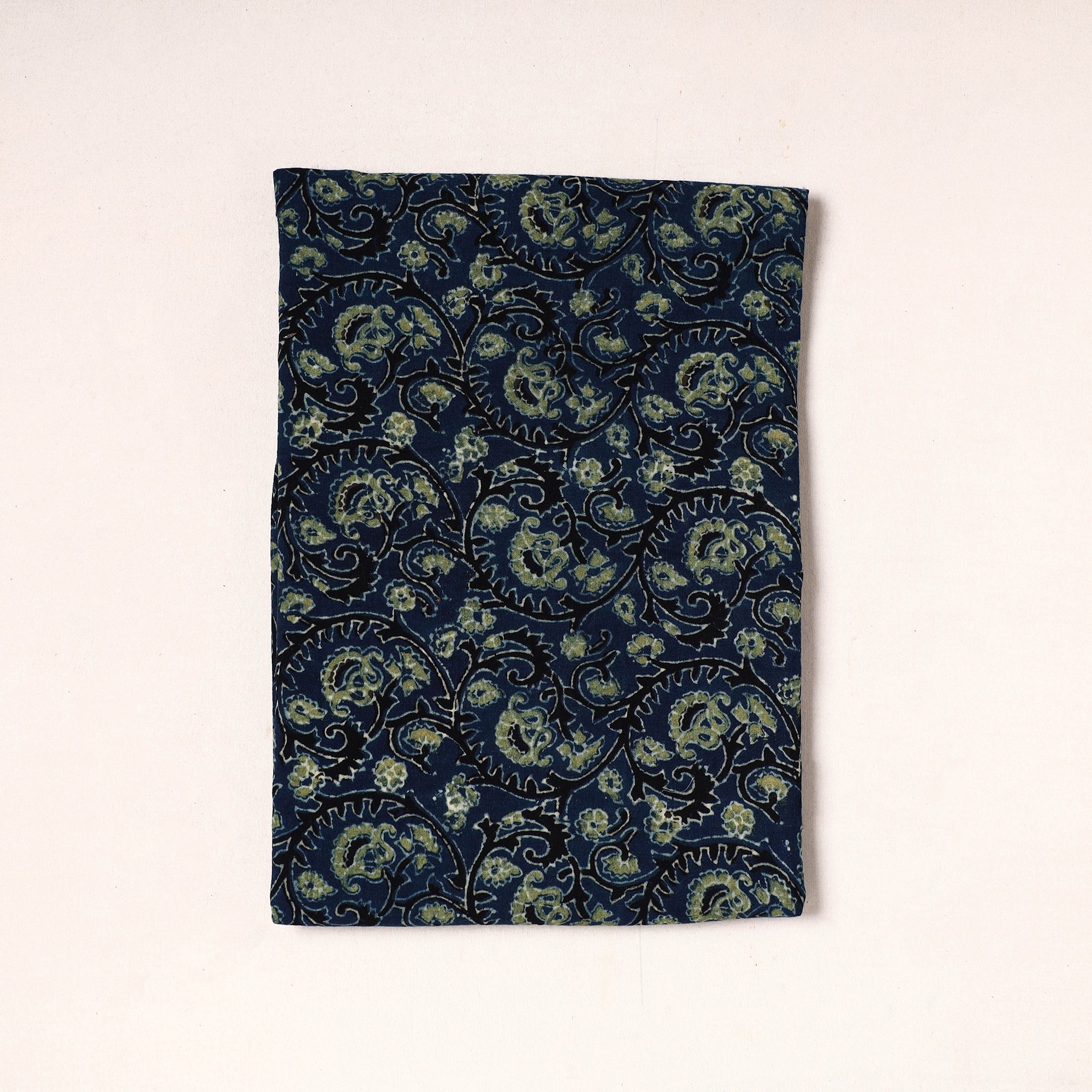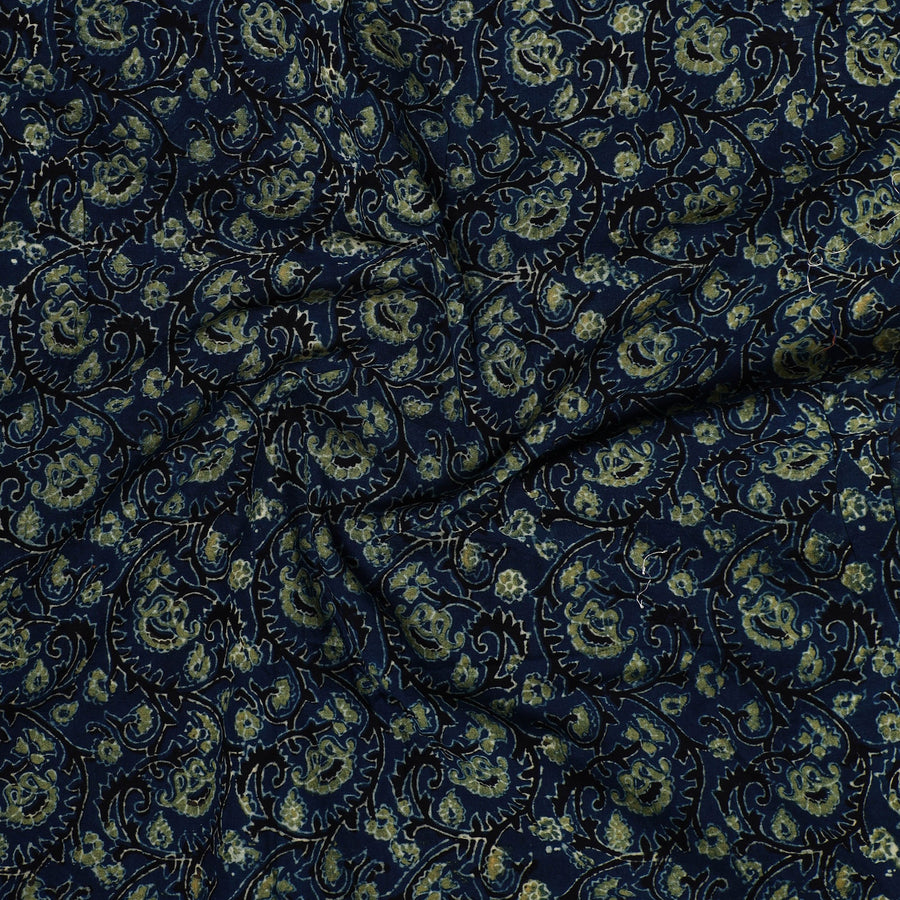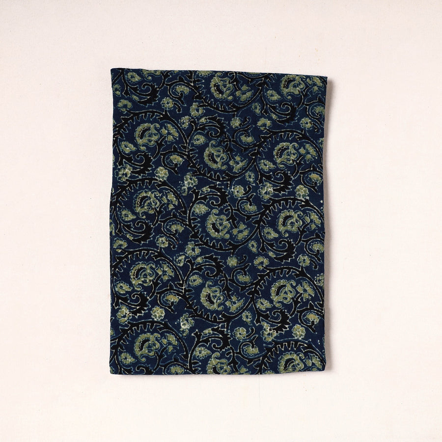 Fine quality blue ajrakh block printed cotton precut fabric, made using natural dyes through traditional ajrakh technique of hand block printing by Abdul Rauph Khatri practised in Kutch region of Gujarat. Perfect for crafting elegant blouses, bags, decorative items, etc., this exquisite textile symbolizes timeless sophistication, adding a touch of elegance to any wardrobe.