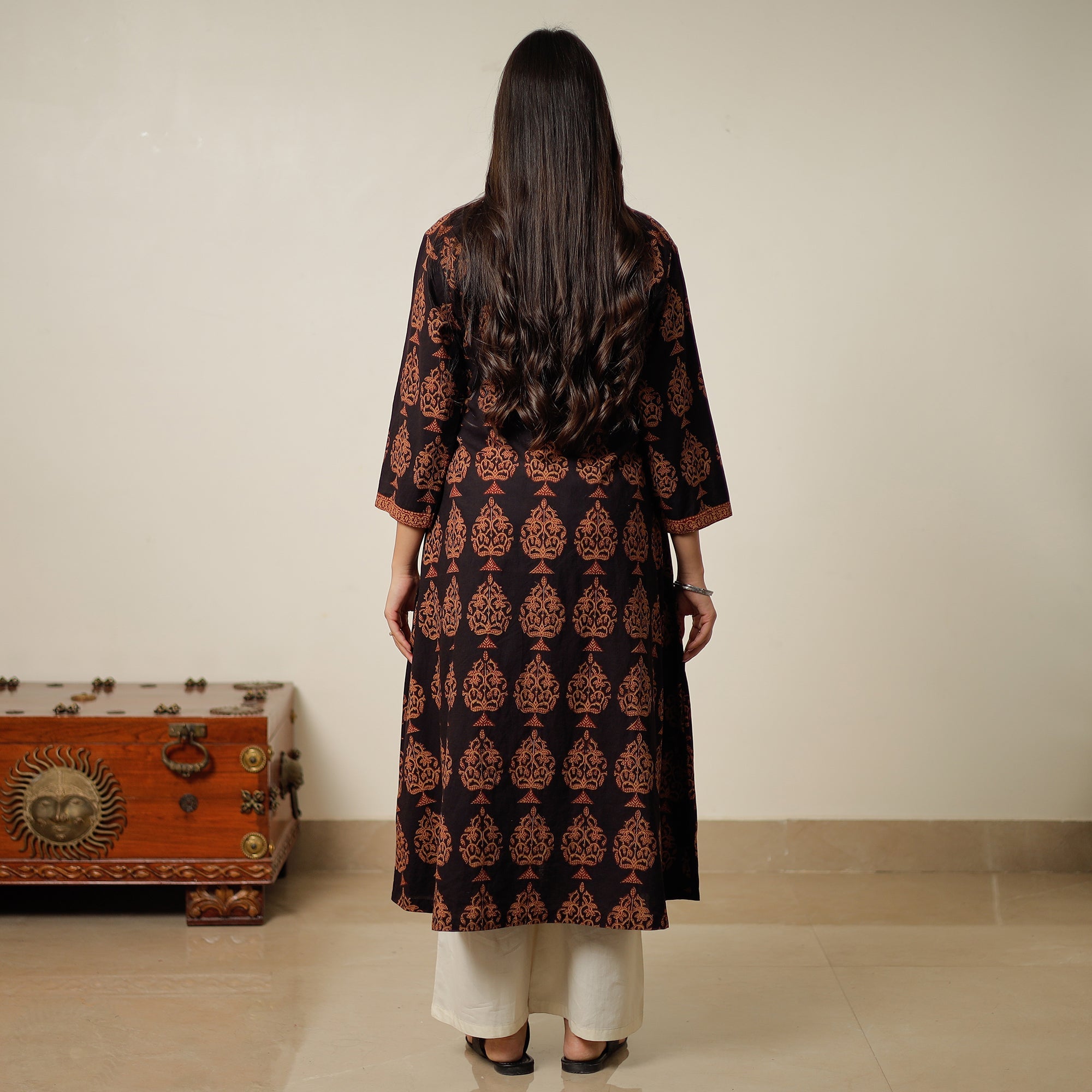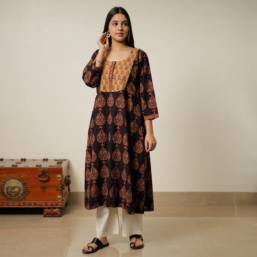 This uniquely designed block print cotton a-line bagh kurta is a perfect blend of style and comfort. This kurta is crafted from natural-dyed cotton fabric, ensuring a comfortable feel against your skin. The kurta also features a convenient one-side pocket, perfect for carrying small essentials. This cotton kurta makes you comfortable all day long. This kurta is perfect for your daily outing and for a special occasion.