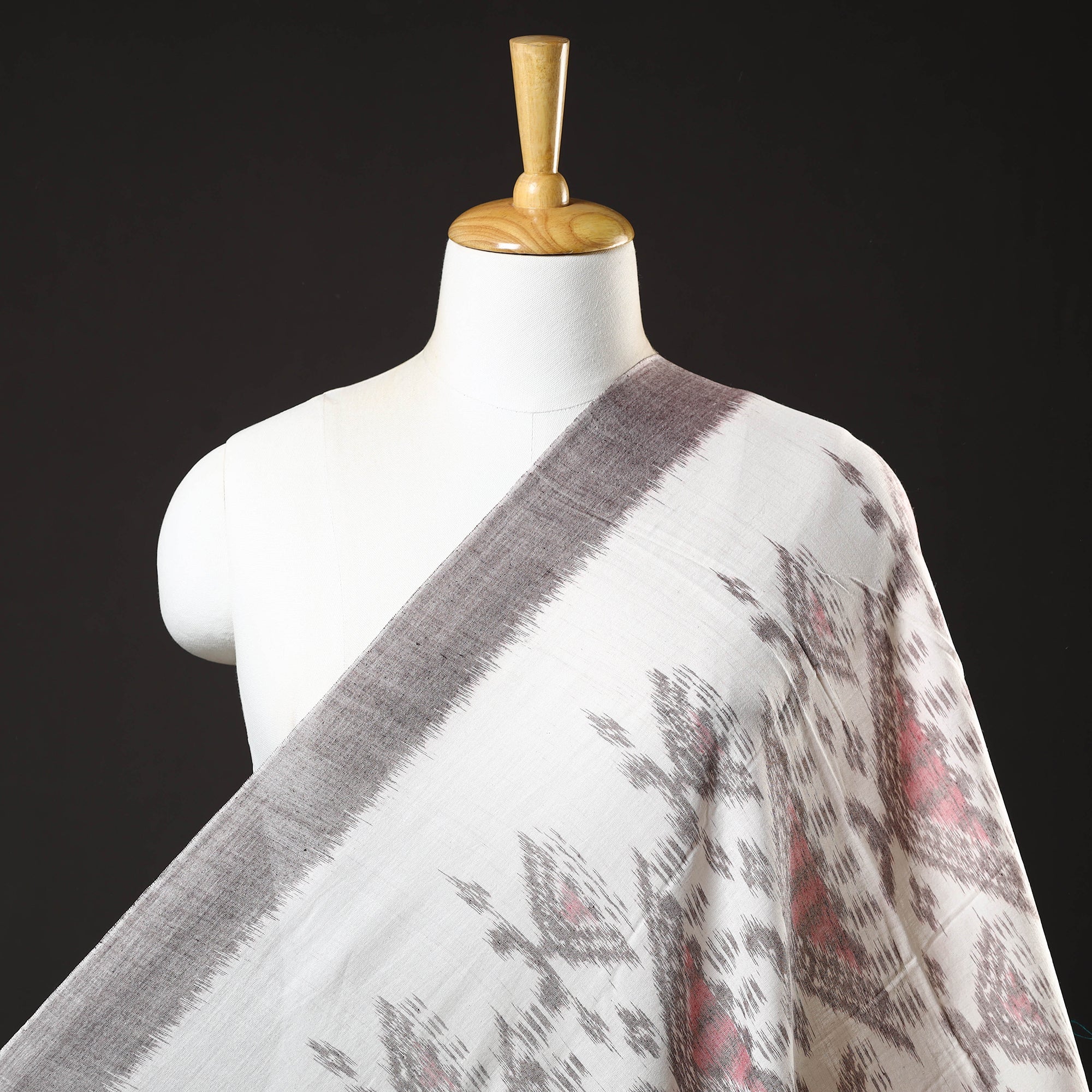 Indulge in the timeless beauty of this maniabandha ikat handloom cotton fabric from Odisha. Known for its vibrant colors and intricate patterns, this fabric showcases the beauty of traditional Ikat weaving. Admired by fashion designers worldwide, it is a testament to the rich textile heritage of India. This fabric is perfect for creating stylish garments, home decor, and accessories that reflect cultural heritage and contemporary flair.
