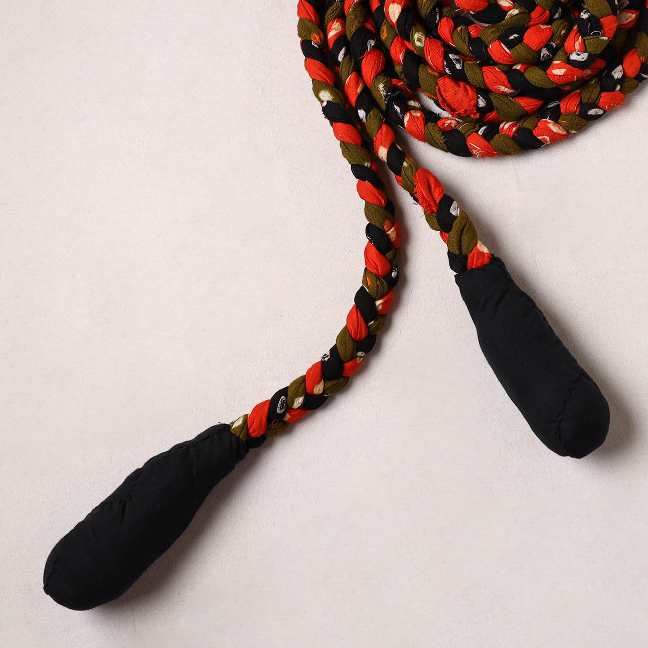 Introducing our eco-friendly, handmade upcycled fabric skipping rope. Crafted with care from recycled materials, this unique skipping rope combines sustainability with fun. Its vibrant colors and sturdy construction make it perfect for fitness enthusiasts of all ages. Whether you're looking to add a touch of eco-consciousness to your workout routine or simply want to enjoy some nostalgic skipping, our upcycled fabric skipping rope is the ideal choice for you.