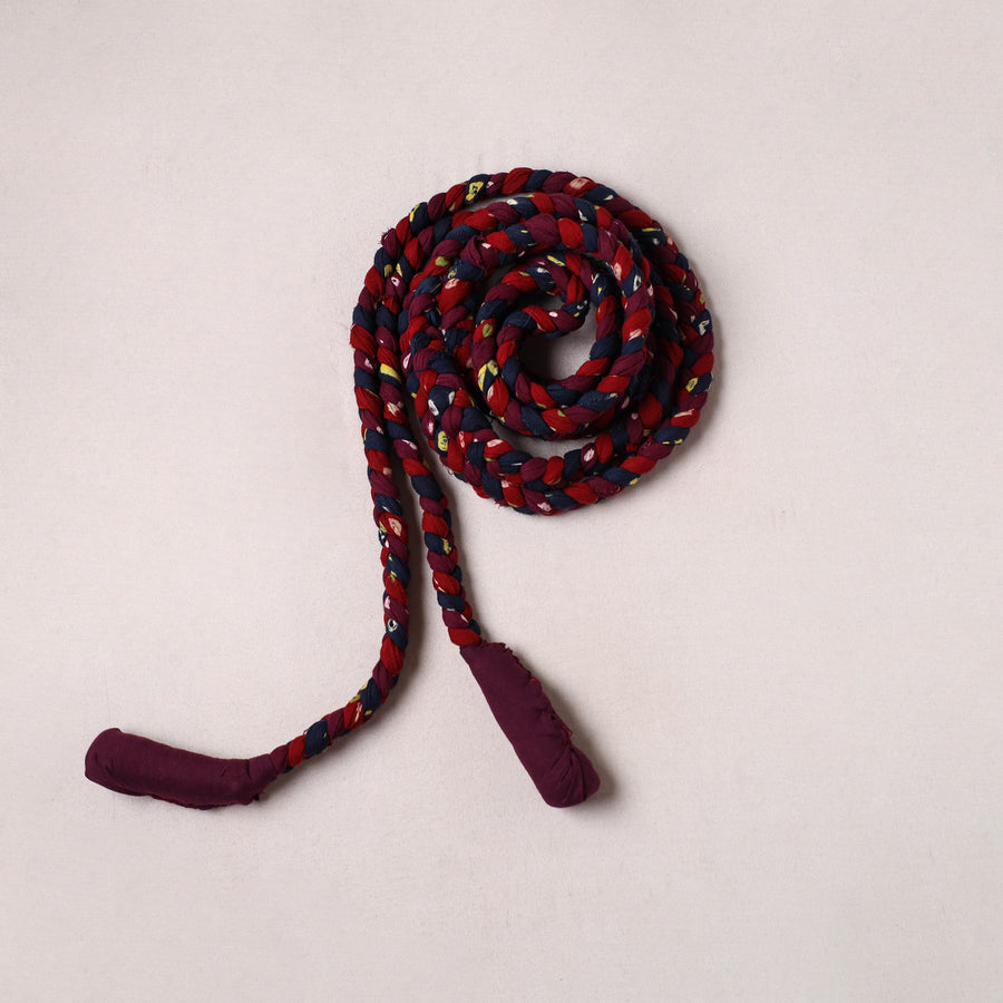 Introducing our eco-friendly, handmade upcycled fabric skipping rope. Crafted with care from recycled materials, this unique skipping rope combines sustainability with fun. Its vibrant colors and sturdy construction make it perfect for fitness enthusiasts of all ages. Whether you're looking to add a touch of eco-consciousness to your workout routine or simply want to enjoy some nostalgic skipping, our upcycled fabric skipping rope is the ideal choice for you.