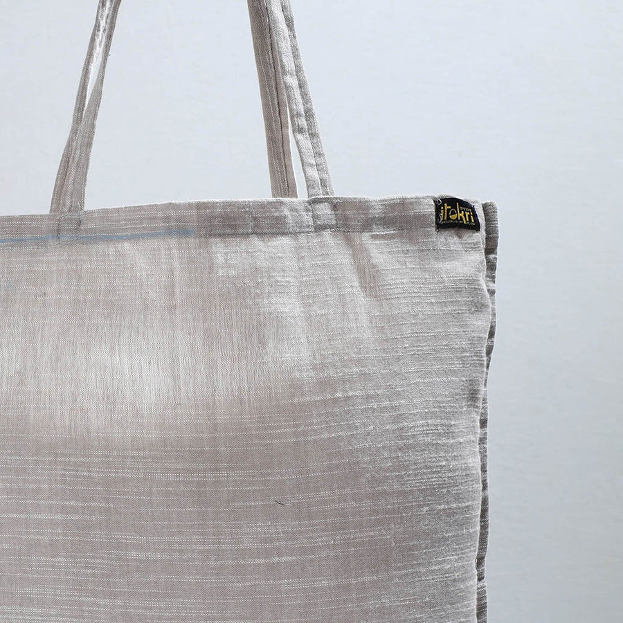 This grey Jhiri pure handloom jhola bag is made from cotton fabric; it blends fashion and tradition seamlessly. Handcrafted with care, this spacious and durable bag is ideal for daily use, whether you're heading to the market, the gym, or a casual outing. Its traditional design and robust construction make it a versatile and reliable accessory for carrying your essentials with ease.