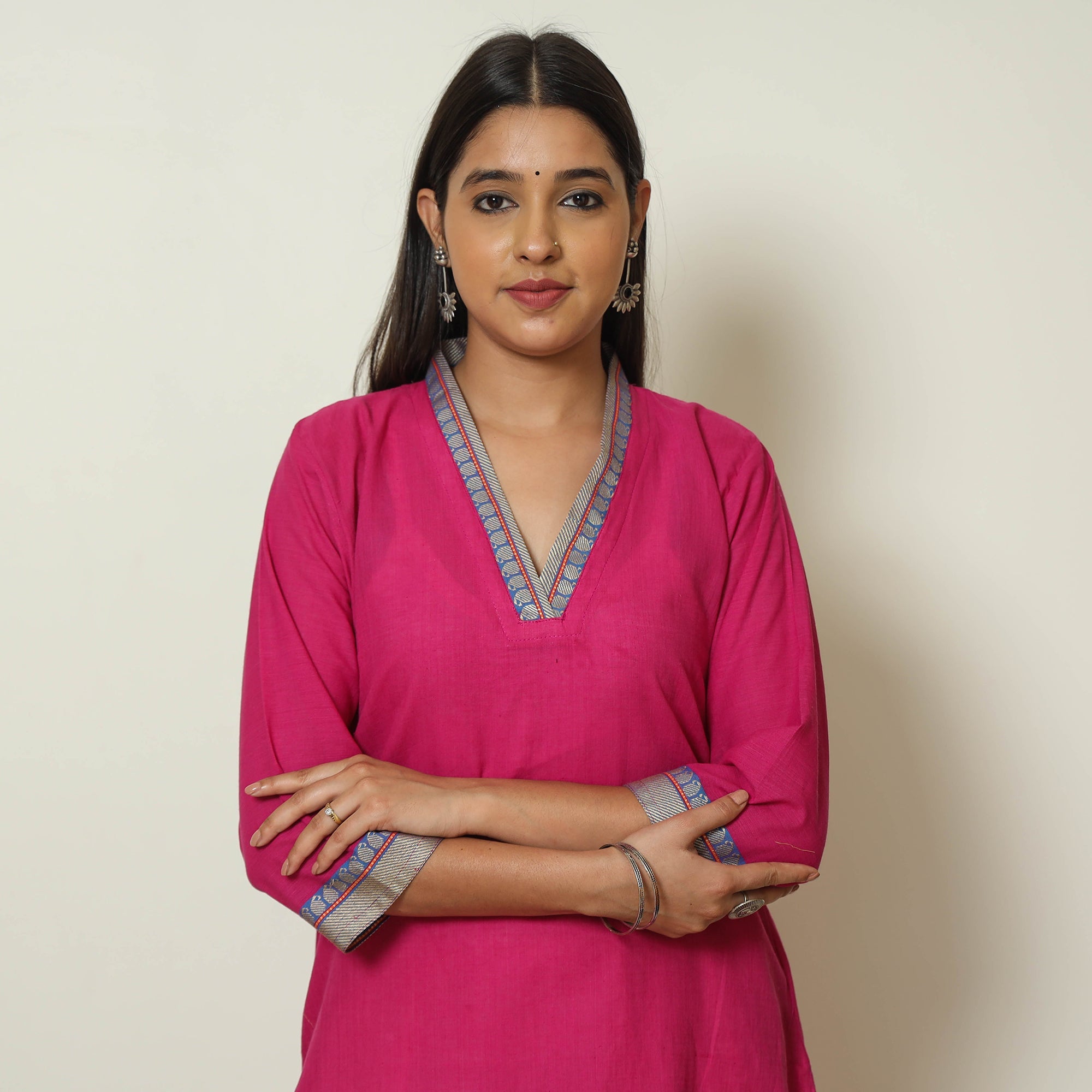 Look and feel beautiful in this uniquely designed Dharwad cotton short kurta. This exquisite kurta is crafted from fine-quality cotton fabric, ensuring a comfortable feel against your skin. It boasts exquisite dharwad border designs, adding a touch of elegance to your ensemble. This cotton kurta makes you comfortable all day long. This kurta is perfect for your daily outing and for a special occasion.