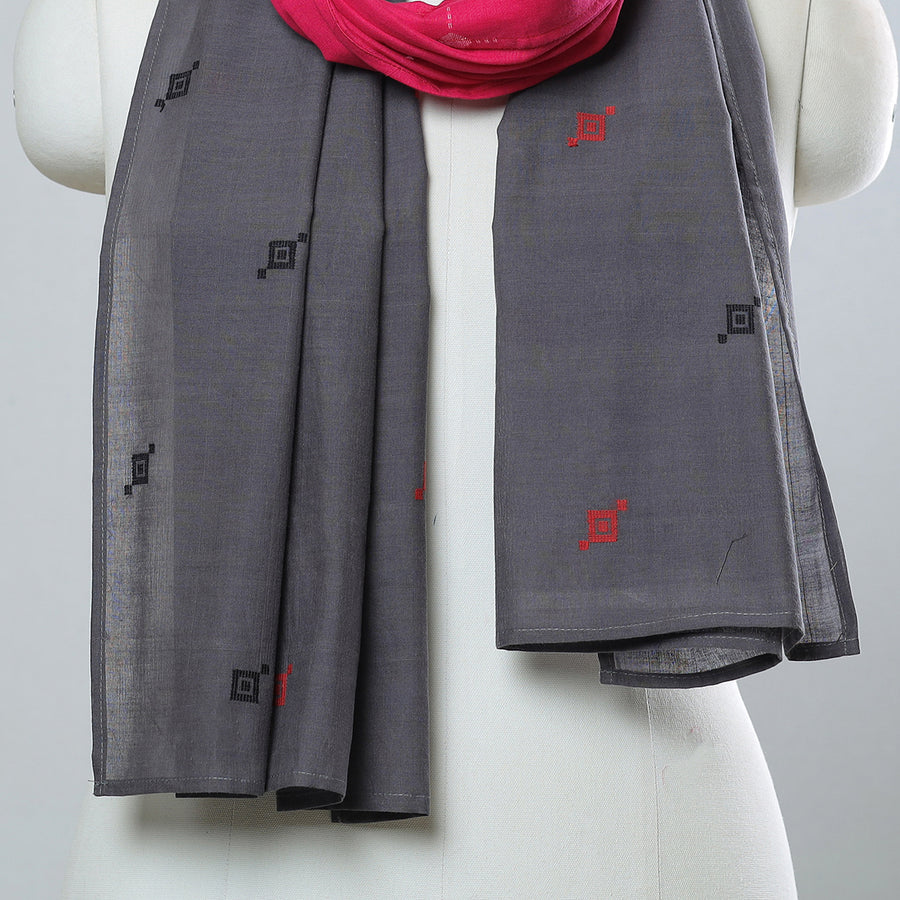 Experience the exquisite craftsmanship with our multicolor jamdani patchwork cotton stole. This stole is a testament to the traditional weaving technique of Jamdani. The base fabric for Jamdani is unbleached cotton yarn, and the design is woven using bleached cotton yarns so that a light-and-dark effect is created. The making of jamdani involves the supplementary weft technique along with the standard weft technique. Adorned with patchwork designs, this stole captures the essence of cultural heritage, making it a cherished addition to any wardrobe. The stole is perfect for adding a pop of color and traditional Indian style to any outfit.