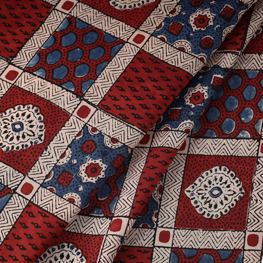 Fine-quality red ajrakh block-printed natural dyed handloom chanderi silk fabric, made using natural dyes through the traditional ajrakh technique of hand block printing by Sufiyan Khatri, practiced in the Kutch region of Gujarat. Chanderi silk is renowned for its sheer texture, lightweight feel, and intricate designs. Perfect for creating stunning ethnic wear, sarees, dupattas, and elegant outfits. Embrace the rich heritage of Indian textile artistry with this exquisite fabric.