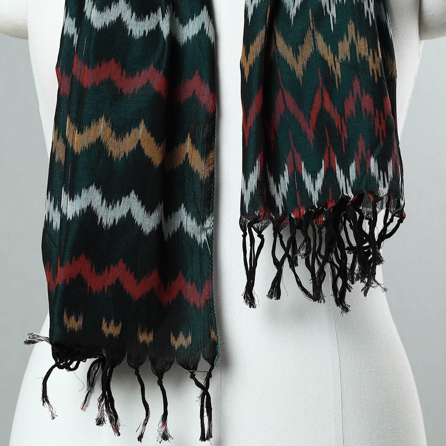 Elevate your style with this pochampally ikat mercerized cotton handloom stole with tassels. crafted with precision and is made from high-quality mercerized cotton. The vibrant colors are achieved through bleed-free VAT dyeing, ensuring long-lasting beauty. The traditional Ikat technique adds a unique pattern to the stole, making it a versatile accessory for any casual outfit.