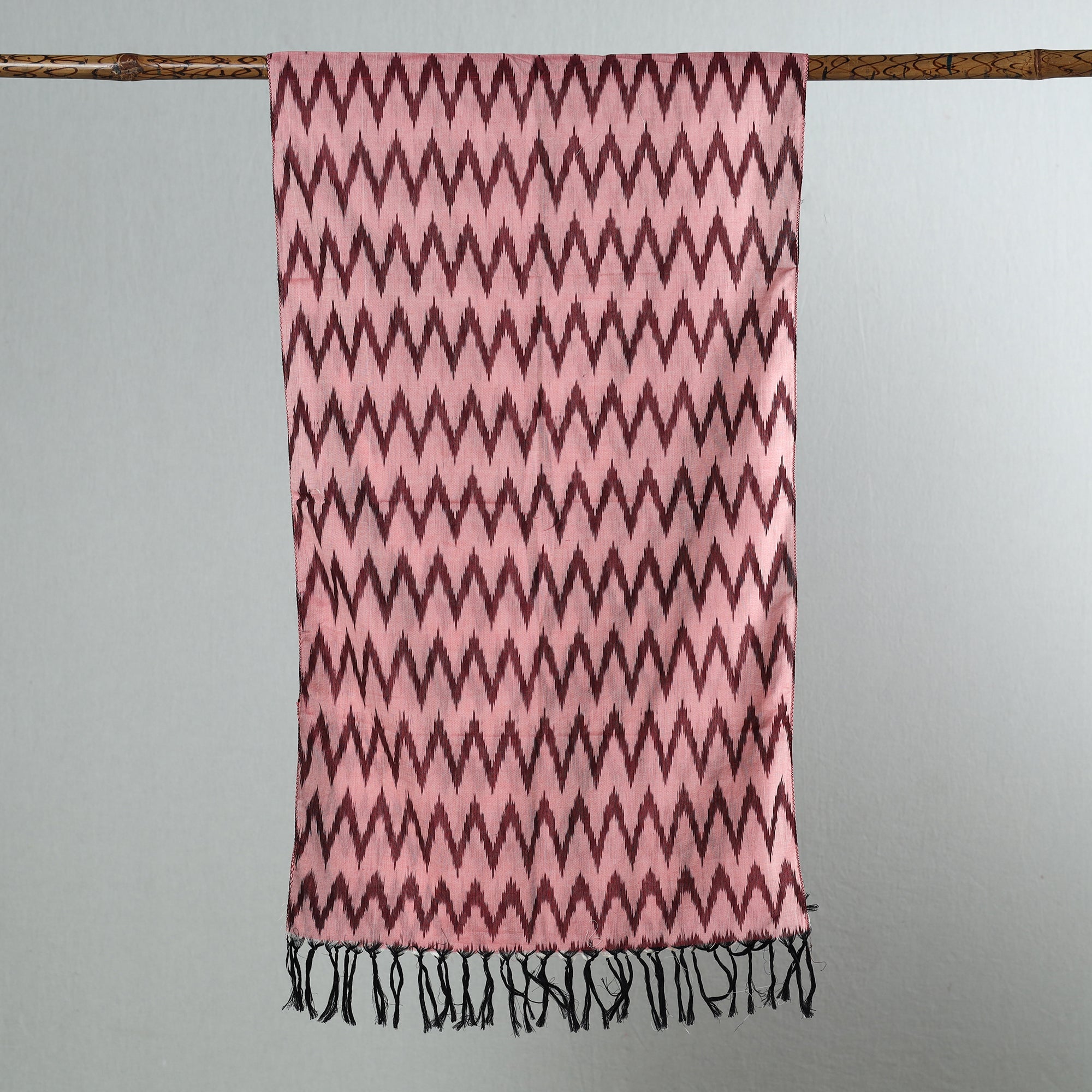 Elevate your style with this peach pochampally ikat mercerized cotton handloom stole with tassels. crafted with precision and is made from high-quality mercerized cotton. The vibrant colors are achieved through bleed-free VAT dyeing, ensuring long-lasting beauty. The traditional Ikat technique adds a unique pattern to the stole, making it a versatile accessory for any casual outfit.