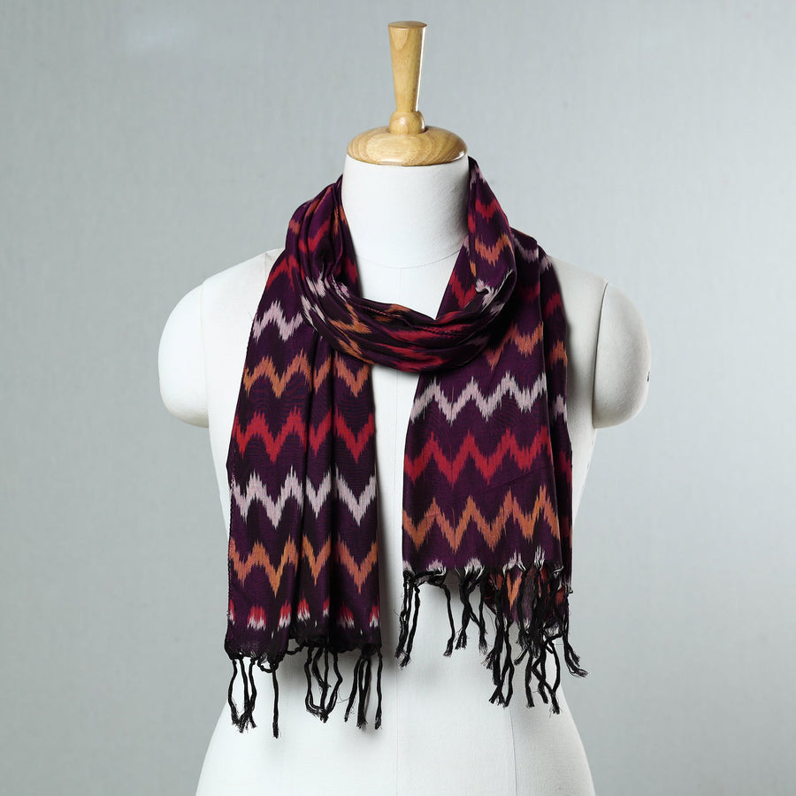 Elevate your style with this pochampally ikat mercerized cotton handloom stole with tassels. crafted with precision and is made from high-quality mercerized cotton. The vibrant colors are achieved through bleed-free VAT dyeing, ensuring long-lasting beauty. The traditional Ikat technique adds a unique pattern to the stole, making it a versatile accessory for any casual outfit.