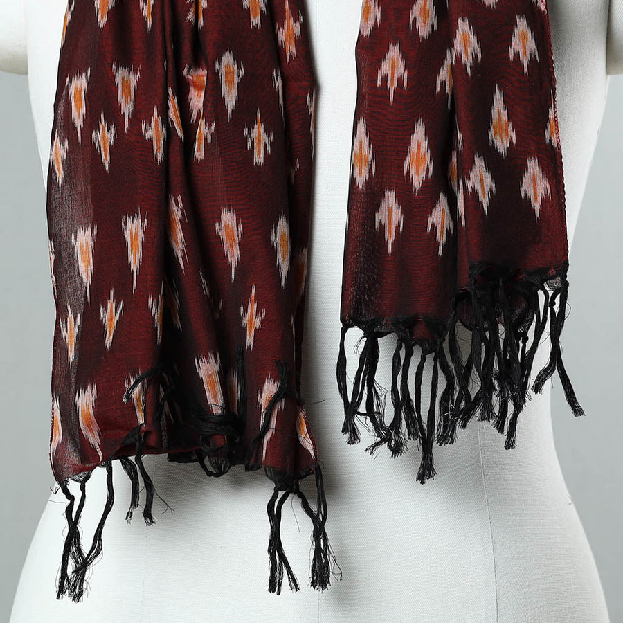 Elevate your style with this pochampally ikat mercerized cotton handloom stole with tassels. crafted with precision and is made from high-quality mercerized cotton. The vibrant colors are achieved through bleed-free VAT dyeing, ensuring long-lasting beauty. The traditional Ikat technique adds a unique pattern to the stole, making it a versatile accessory for any casual outfit.