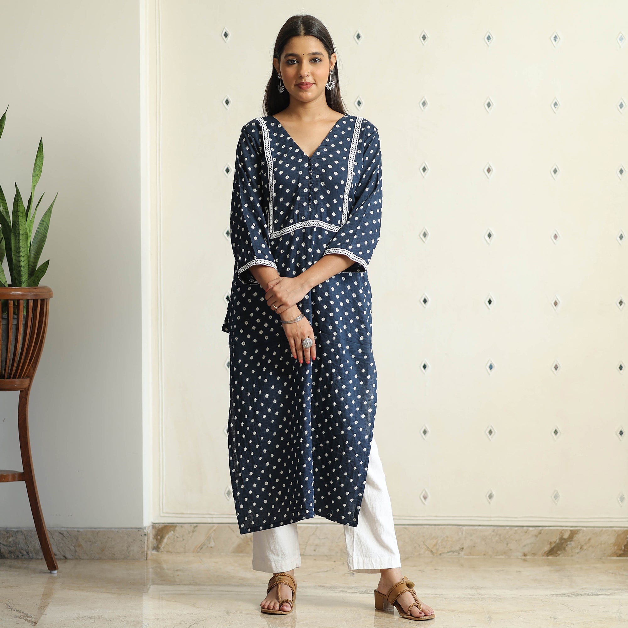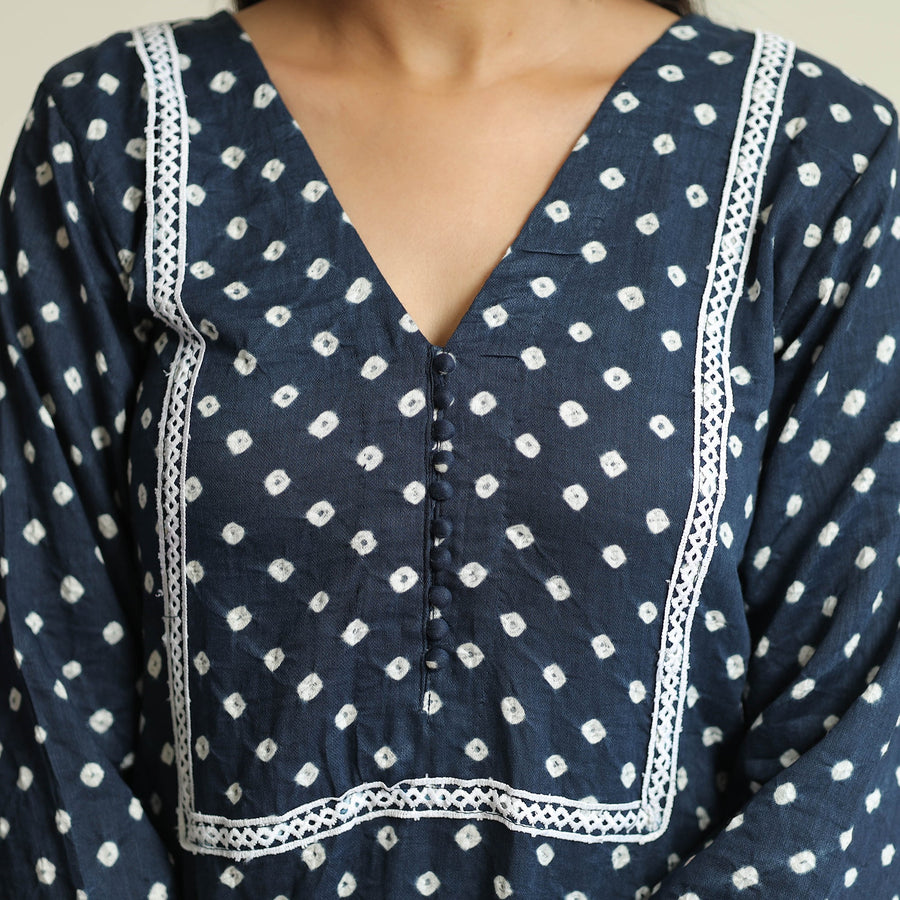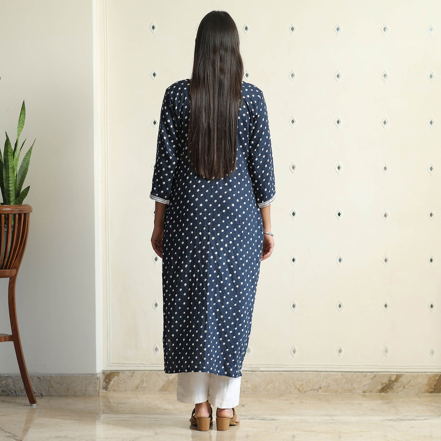 This exquisite bandhani tie-dye cotton straight kurta is a perfect blend of style and comfort. This kurta is crafted from soft cotton fabric, ensuring a comfortable feel against your skin. The kurta also features a convenient one-side pocket, perfect for carrying small essentials. This cotton kurta makes you comfortable all day long. This kurta is perfect for your daily outing and for a special occasion.