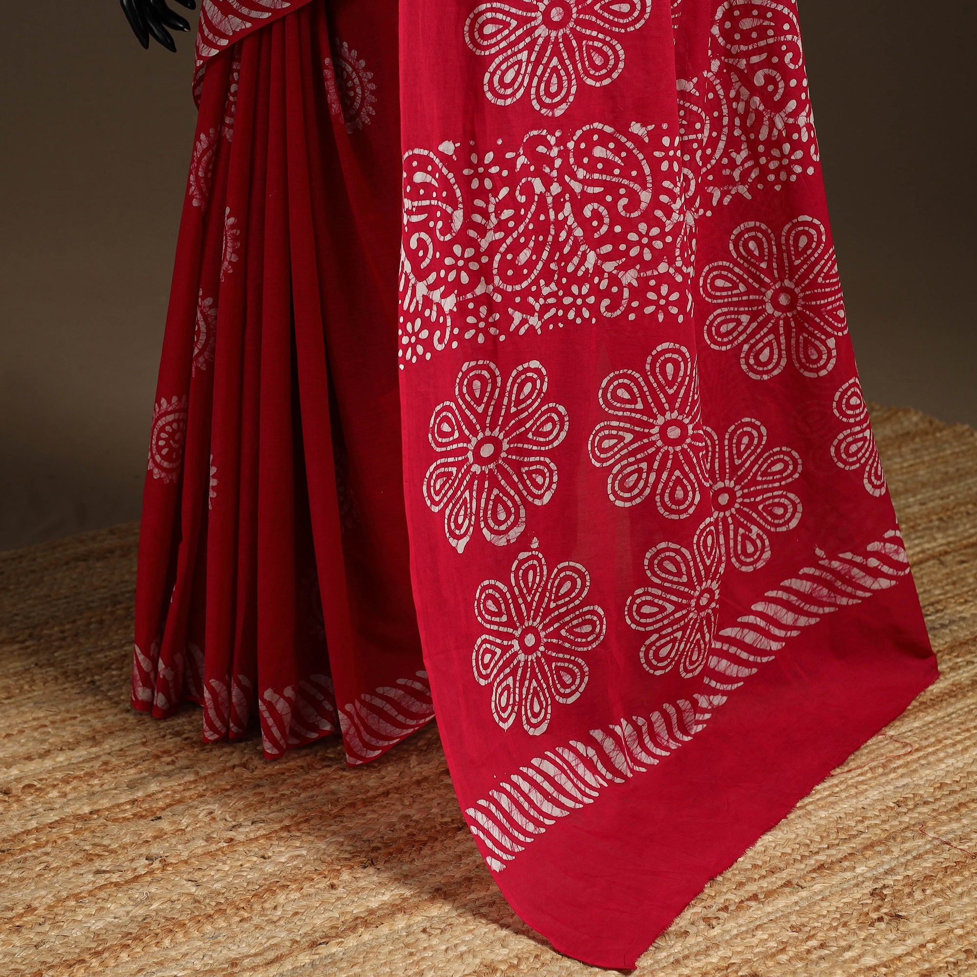 • Red - cotton hand batik saree 06 - handcrafted