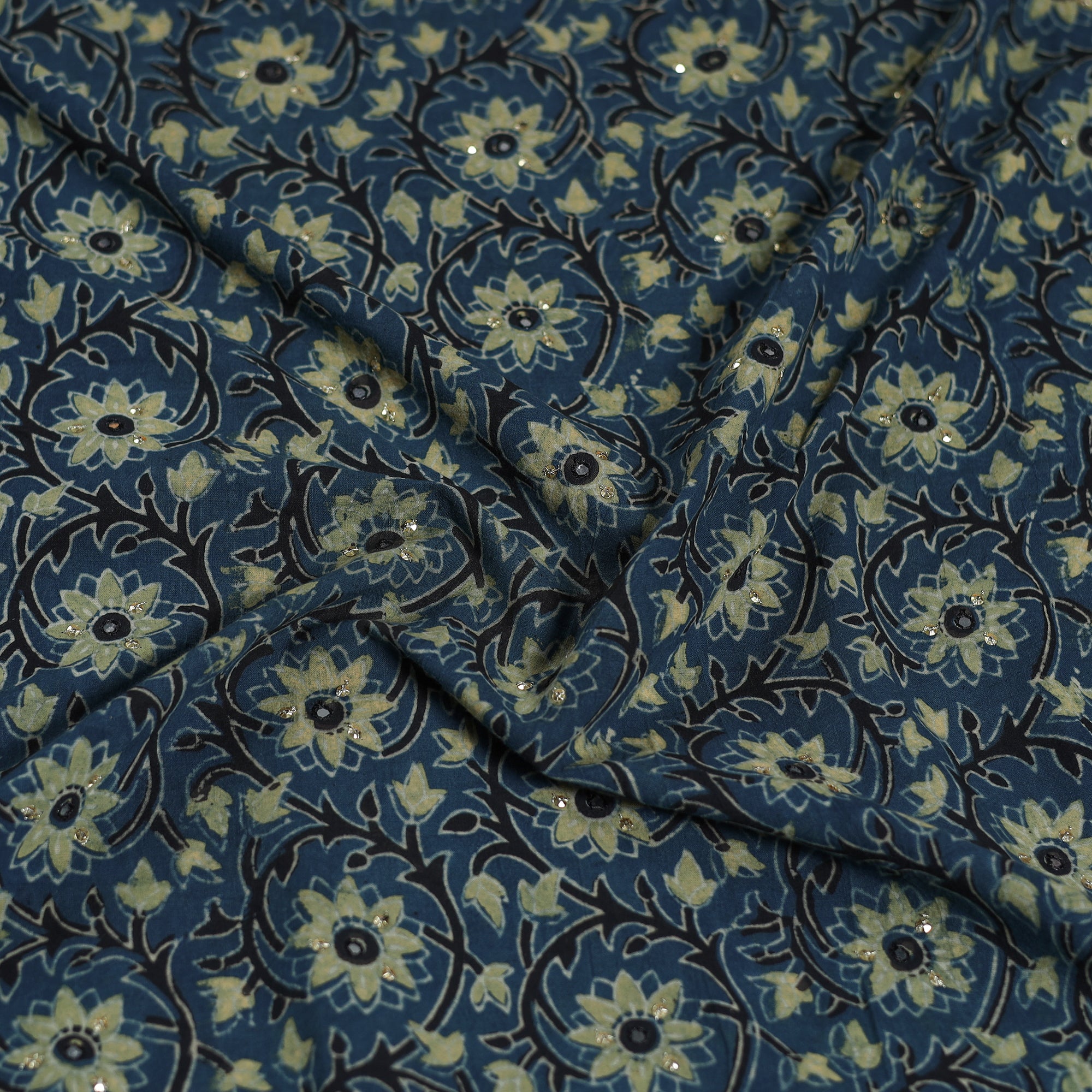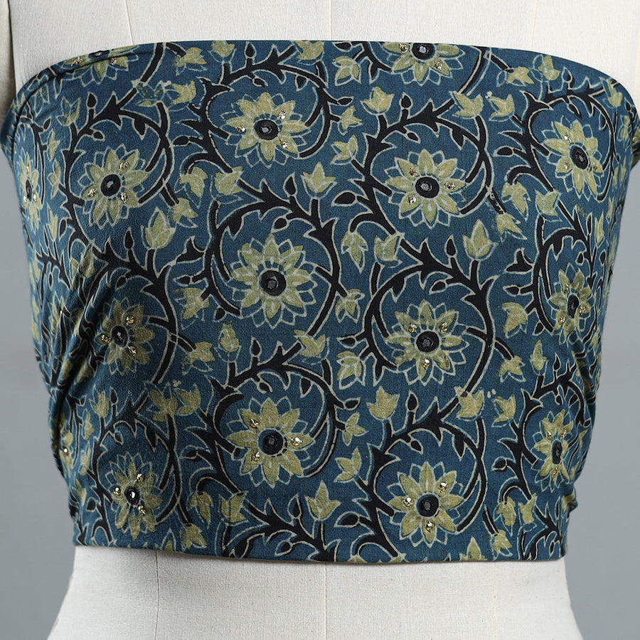 This exquisite hand-embroidered blue ajrakh cotton blouse piece combines traditional craftsmanship with modern elegance, making it perfect for creating unique and stylish blouses that add a touch of sophistication to any outfit. The intricate Ajrakh patterns, meticulously hand-embroidered on high-quality cotton, ensure both comfort and style, making this blouse piece a versatile addition to your wardrobe for any occasion.