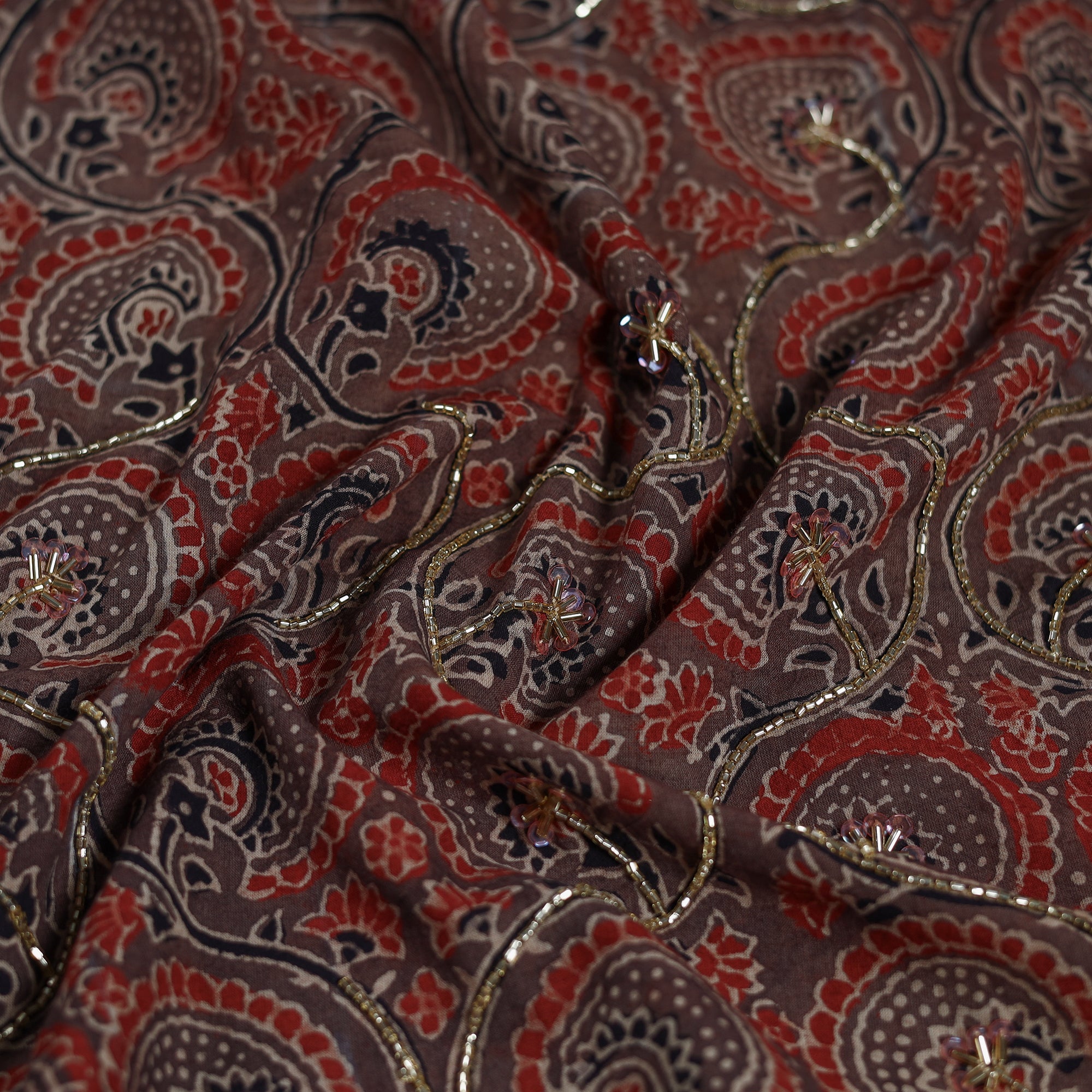 Ajrakh is a well-known traditional vegetable dyeing that resists block-printing techniques on cloth. Originated in Kutch, It is nearly around 4,500 years old practised by Khatri community of Kutch and Sikh.